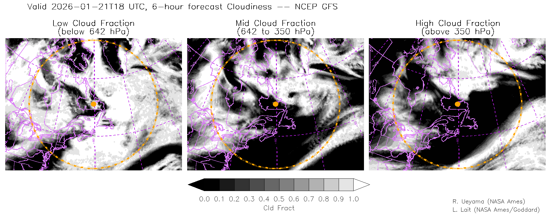 NCEP GFS Forecast Cloud Fraction (High, Mid, Low)