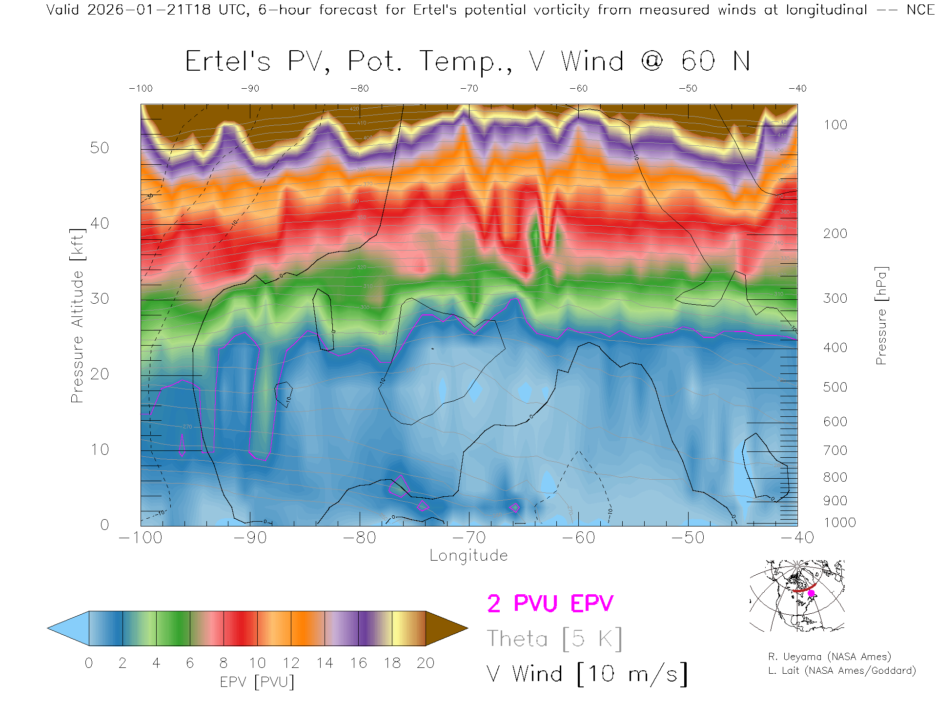 NCEP GFS Forecast PV X-Section (60 N)