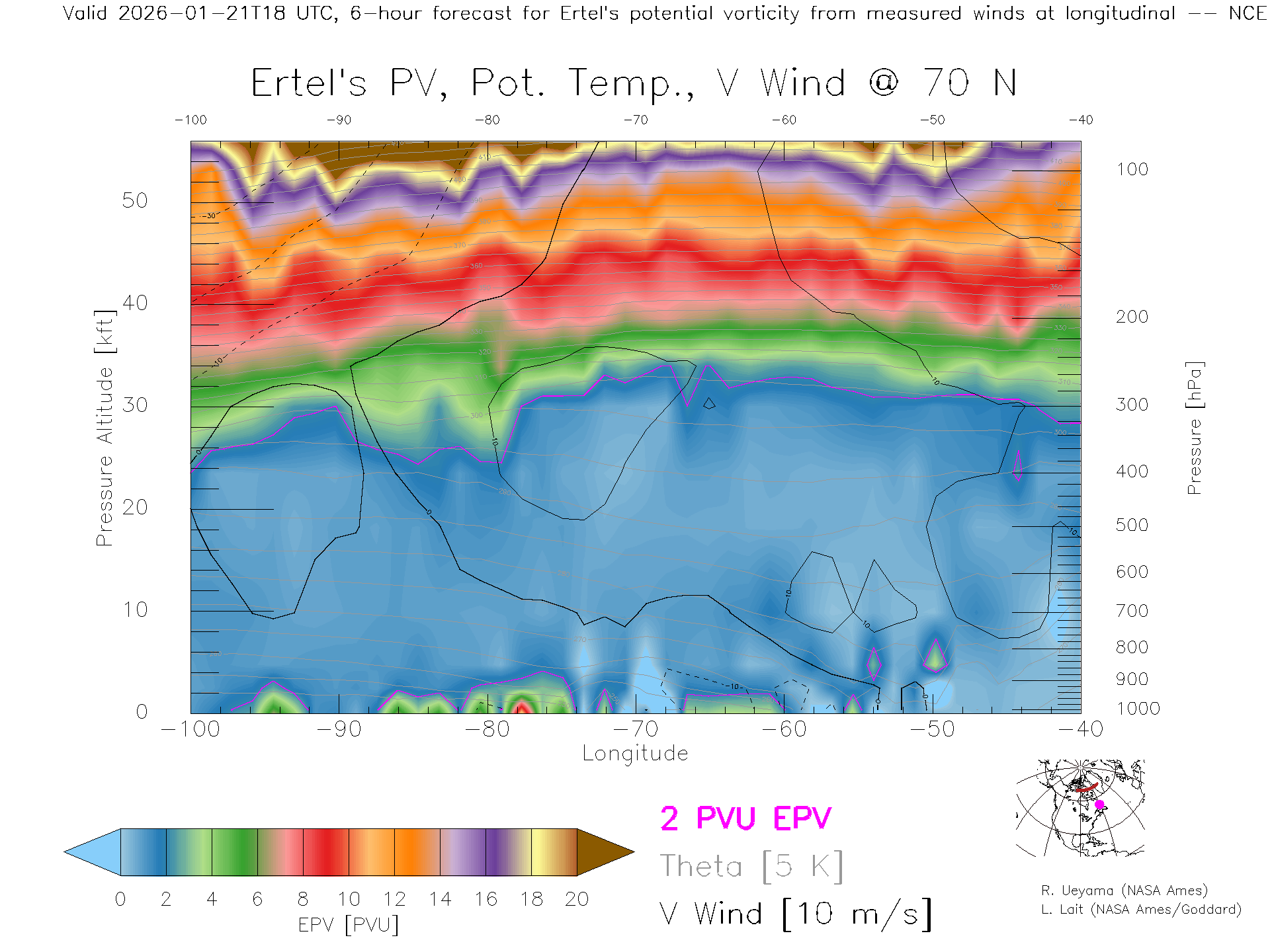 NCEP GFS Forecast PV X-Section (70 N)