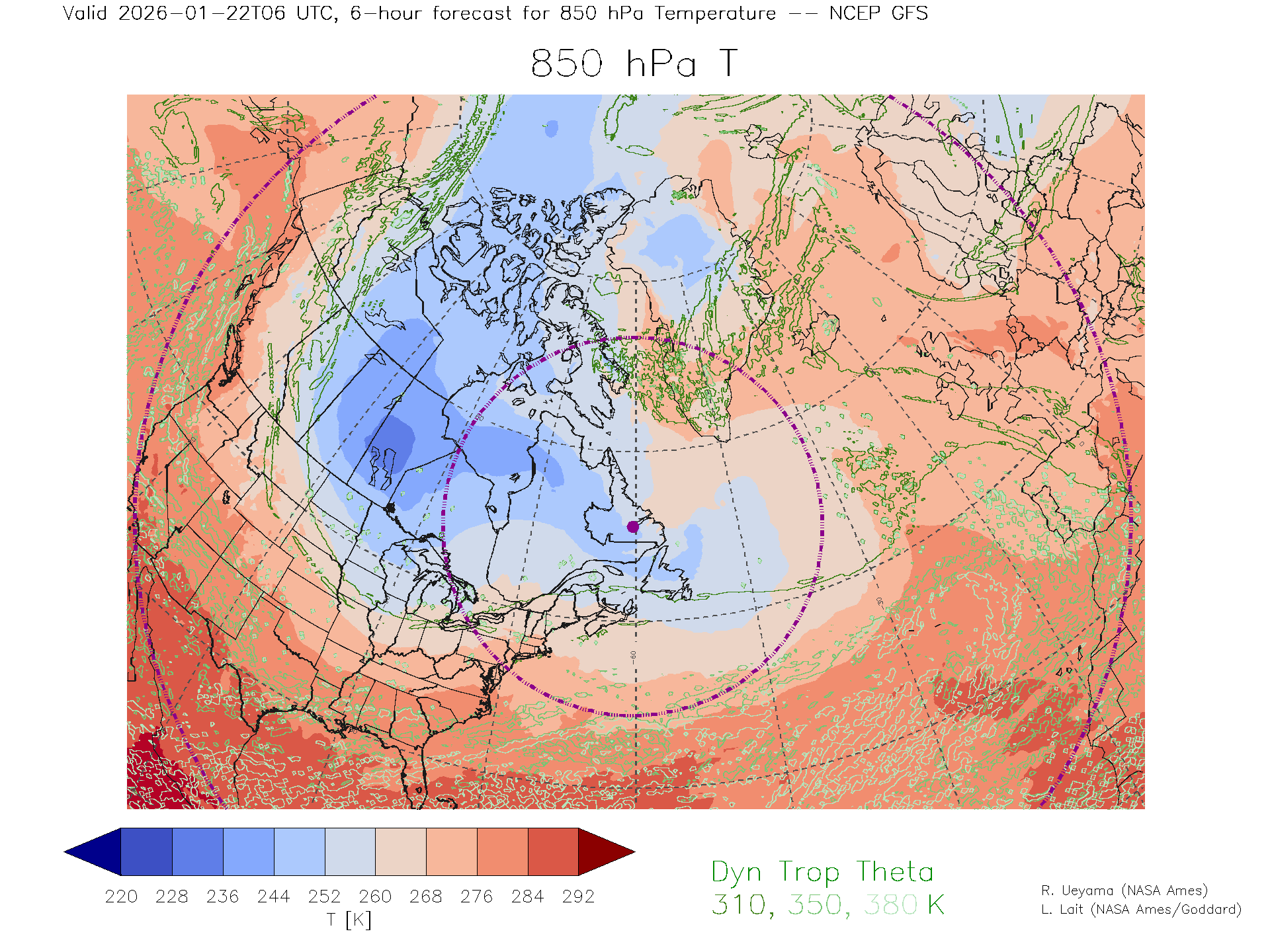 NCEP GFS Forecast 850 hPa Temp.