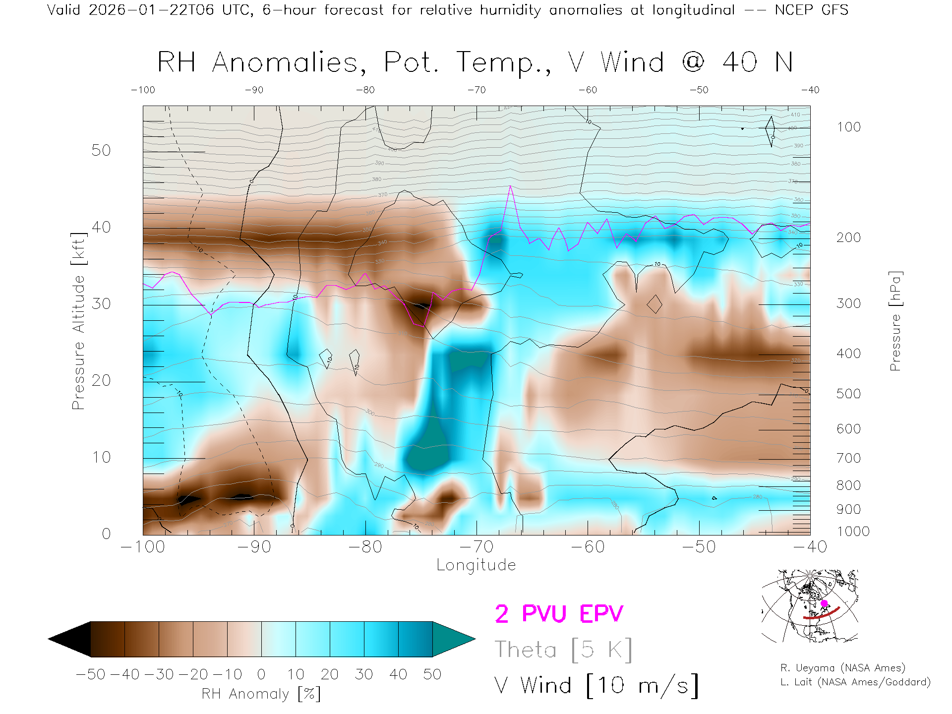 NCEP GFS Forecast Rel. Hum. X-Section (40 N)
