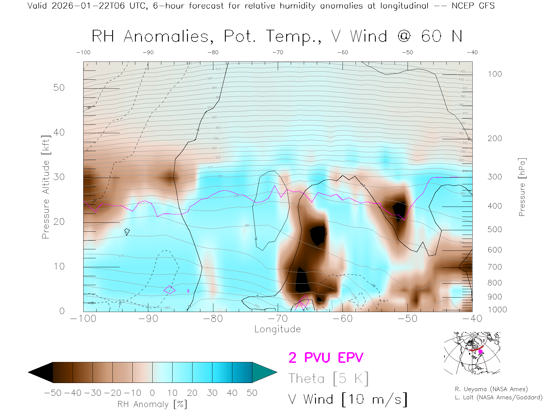 NCEP GFS Forecast Rel. Hum. X-Section (60 N)