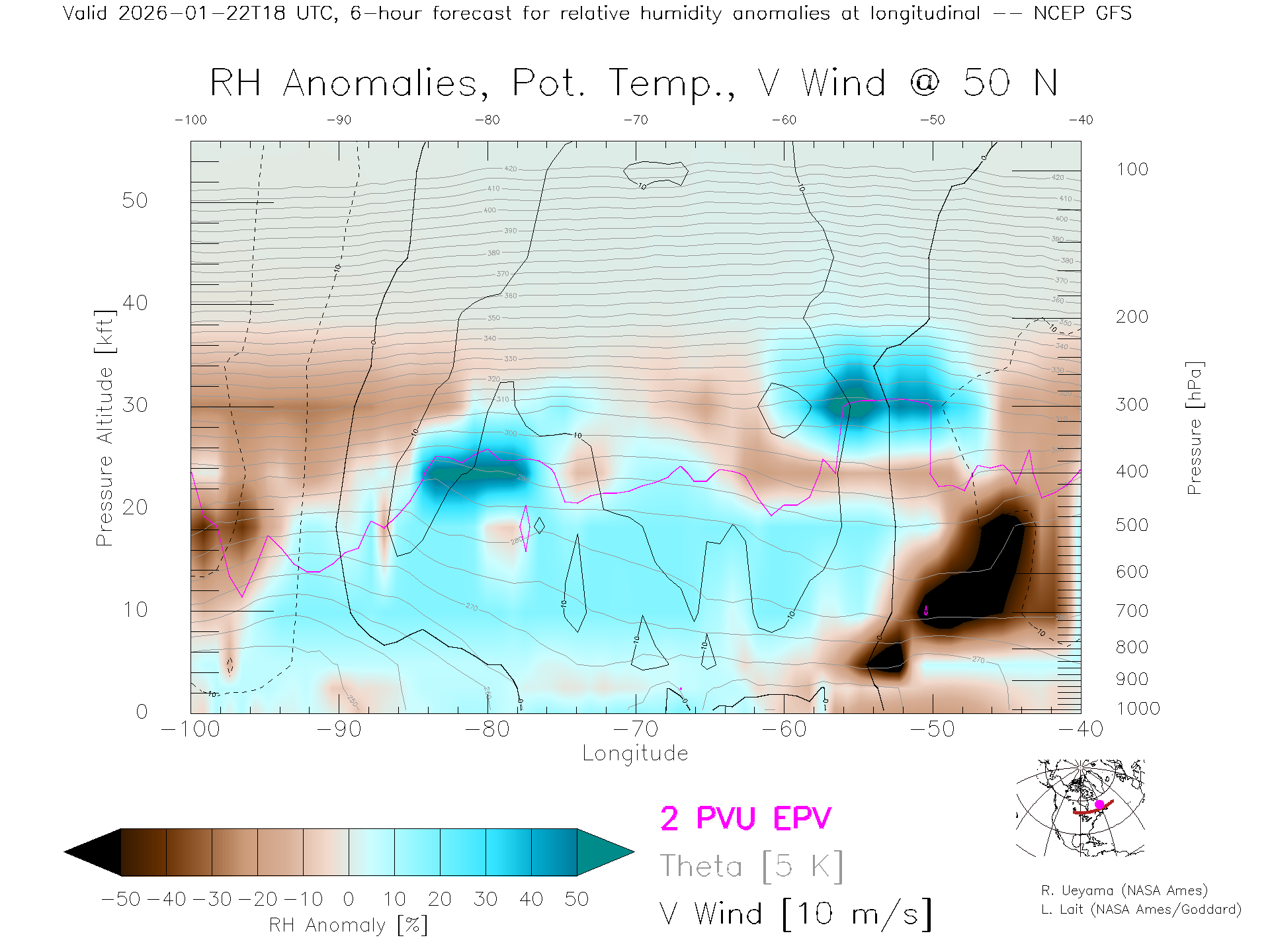 NCEP GFS Forecast Rel. Hum. X-Section (50 N)