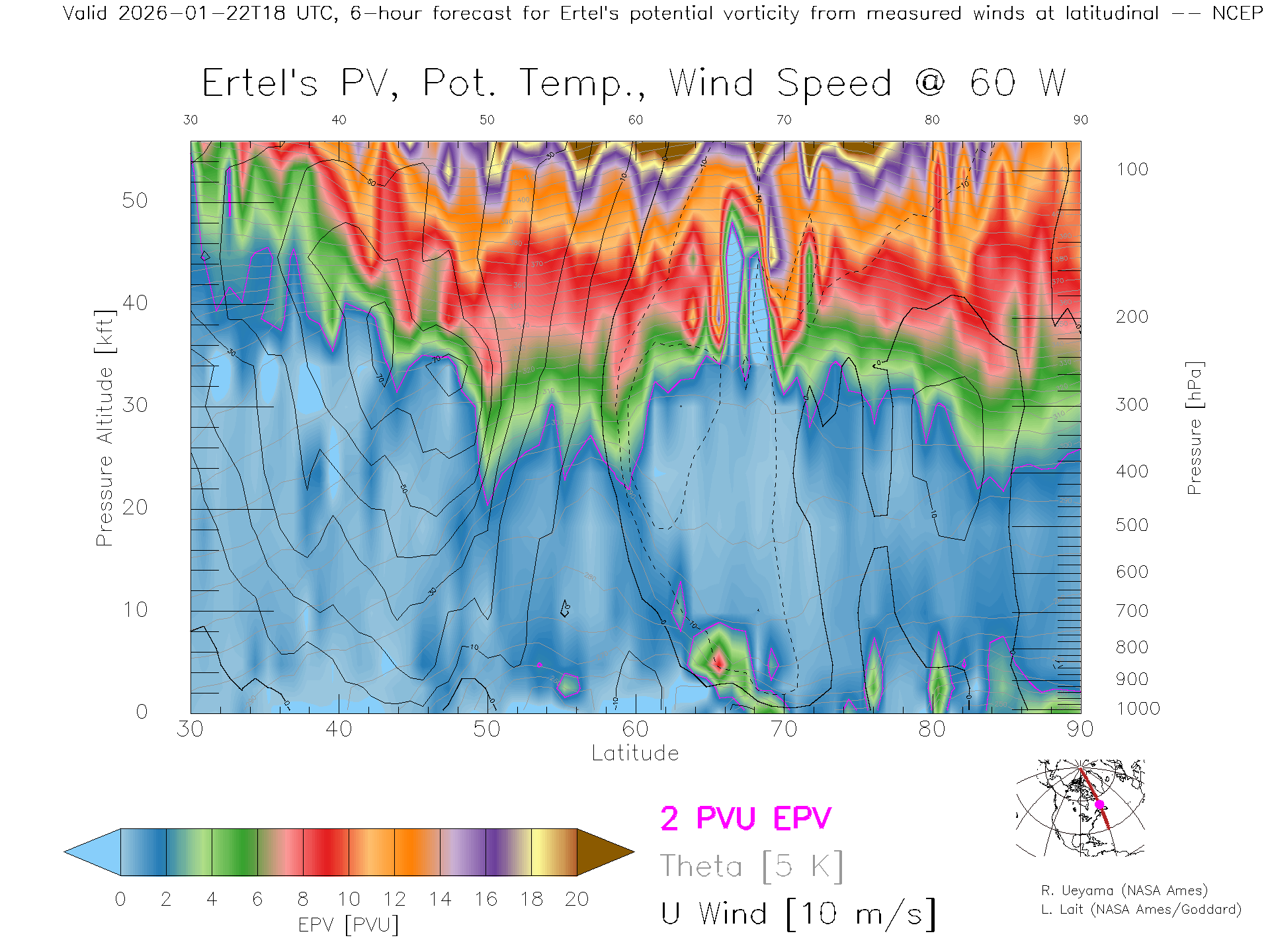 NCEP GFS Forecast PV X-Section (60 W)