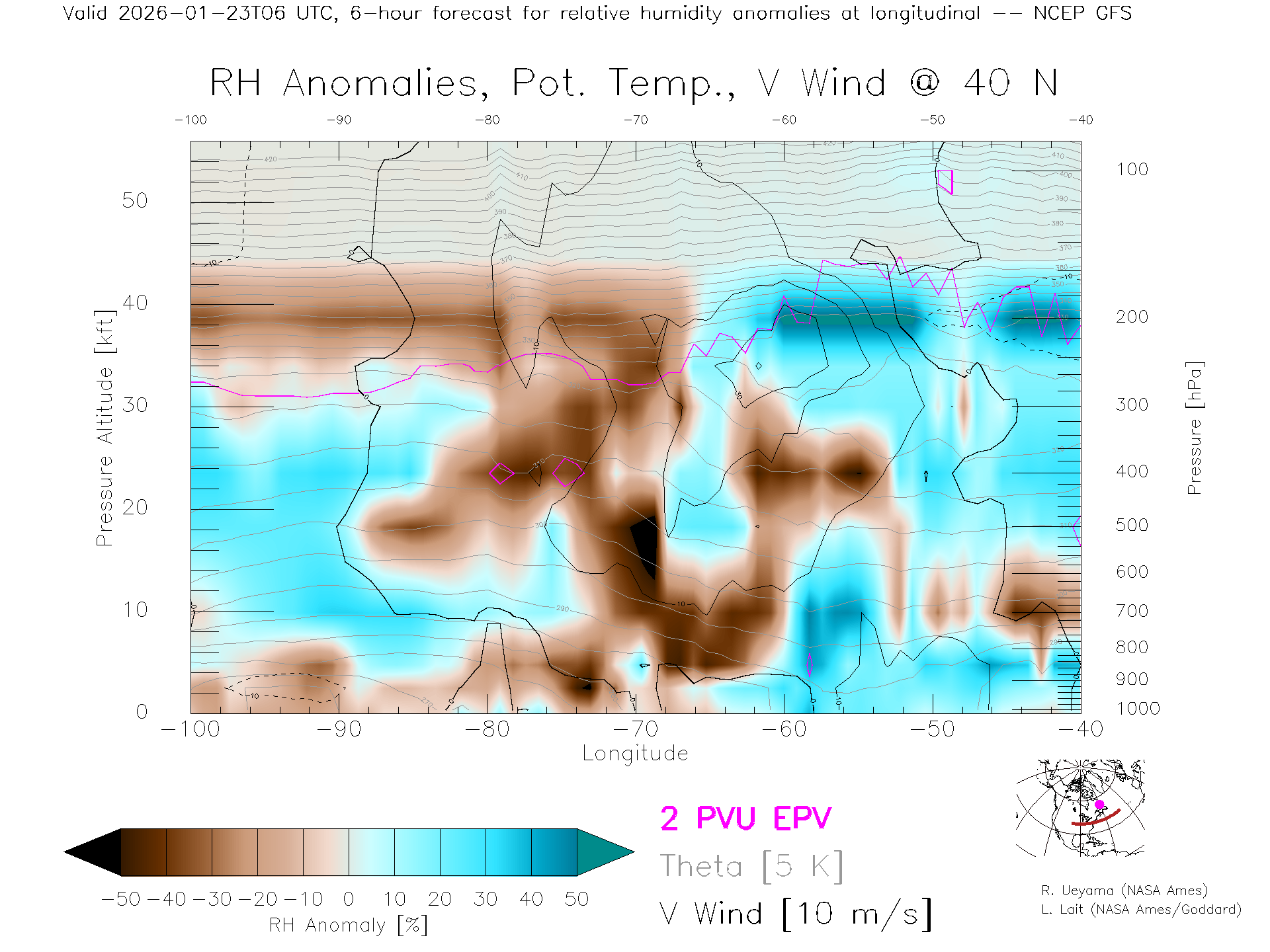 NCEP GFS Forecast Rel. Hum. X-Section (40 N)