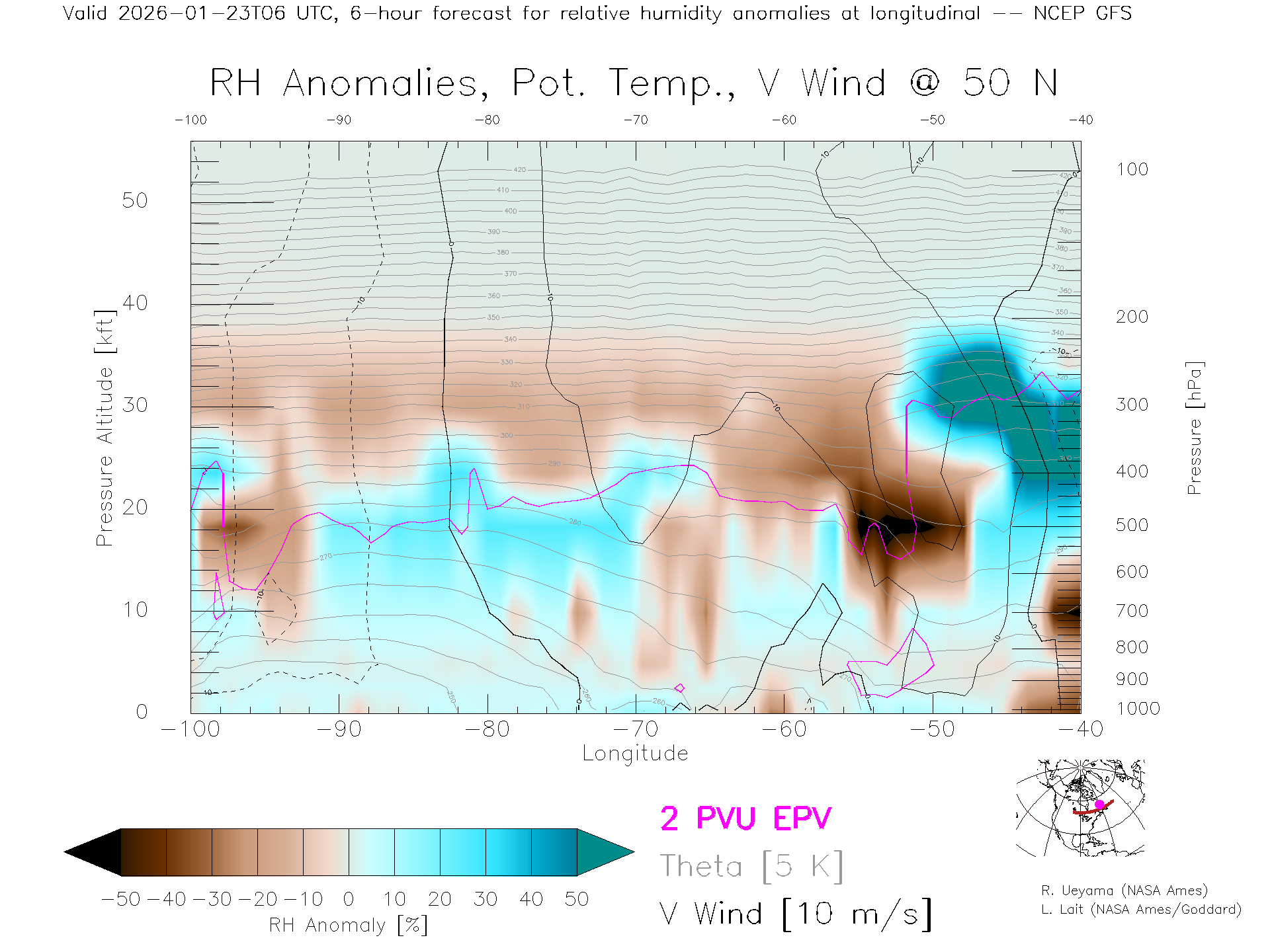 NCEP GFS Forecast Rel. Hum. X-Section (50 N)