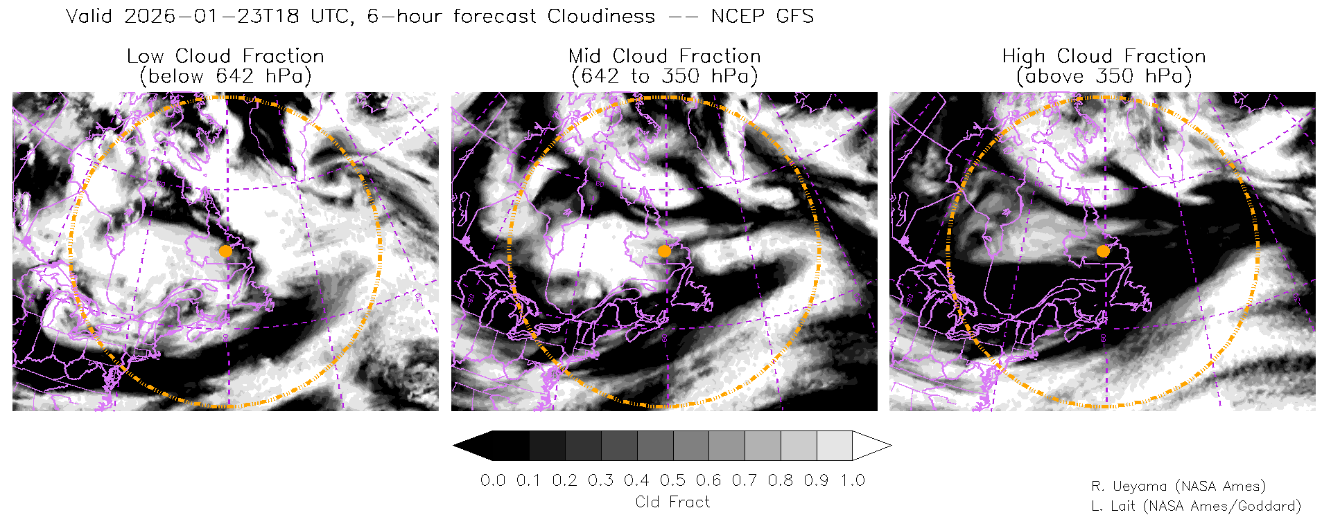 NCEP GFS Forecast Cloud Fraction (High, Mid, Low)