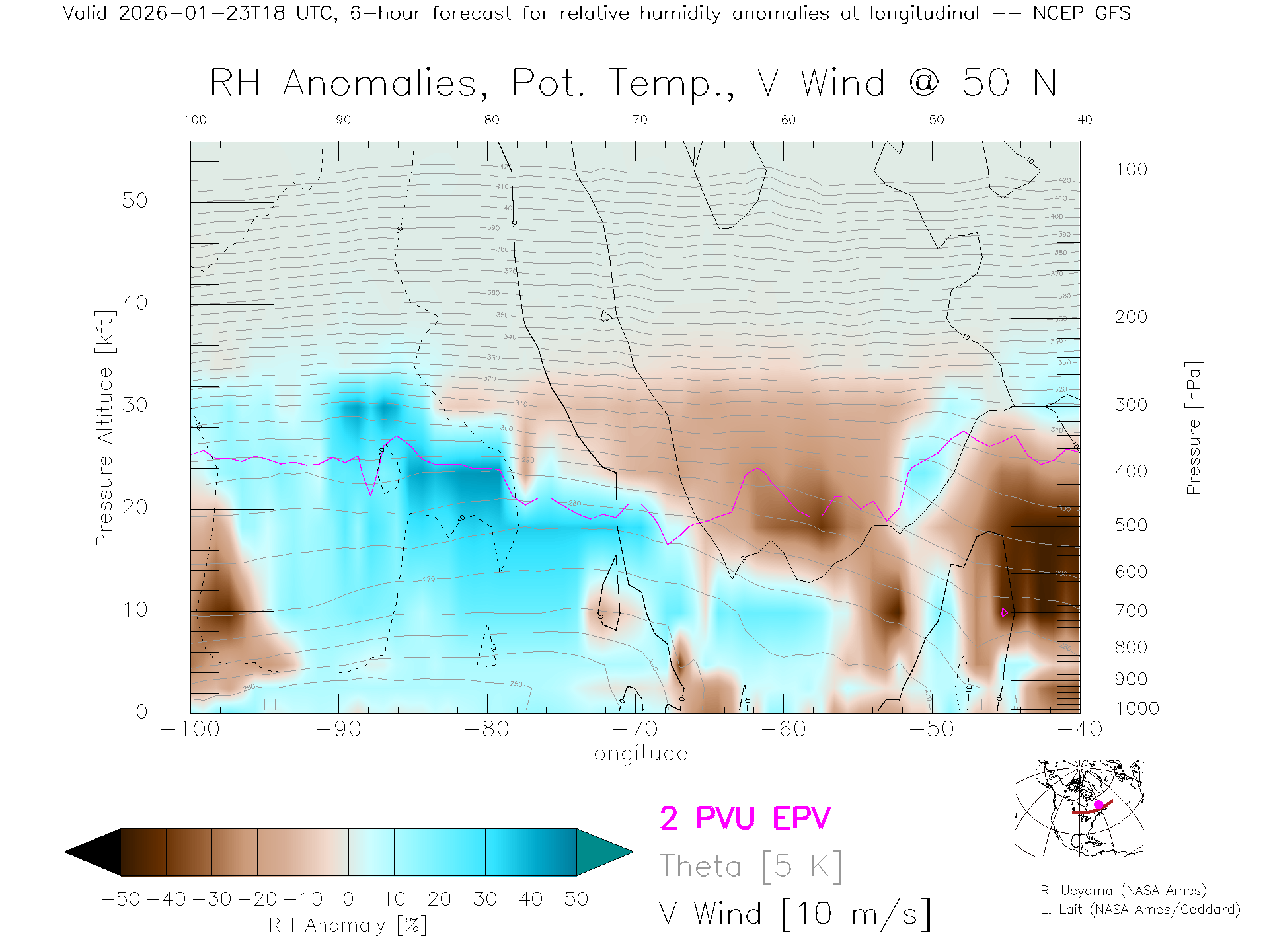 NCEP GFS Forecast Rel. Hum. X-Section (50 N)