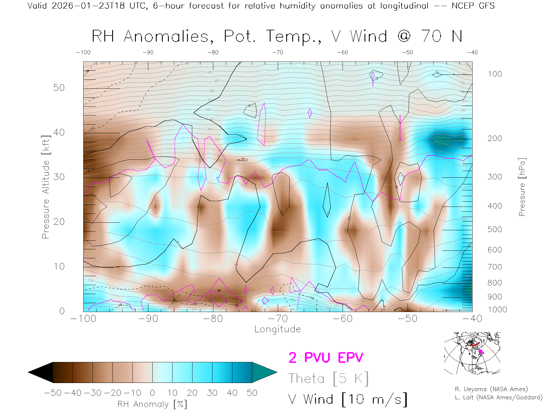 NCEP GFS Forecast Rel. Hum. X-Section (70 N)