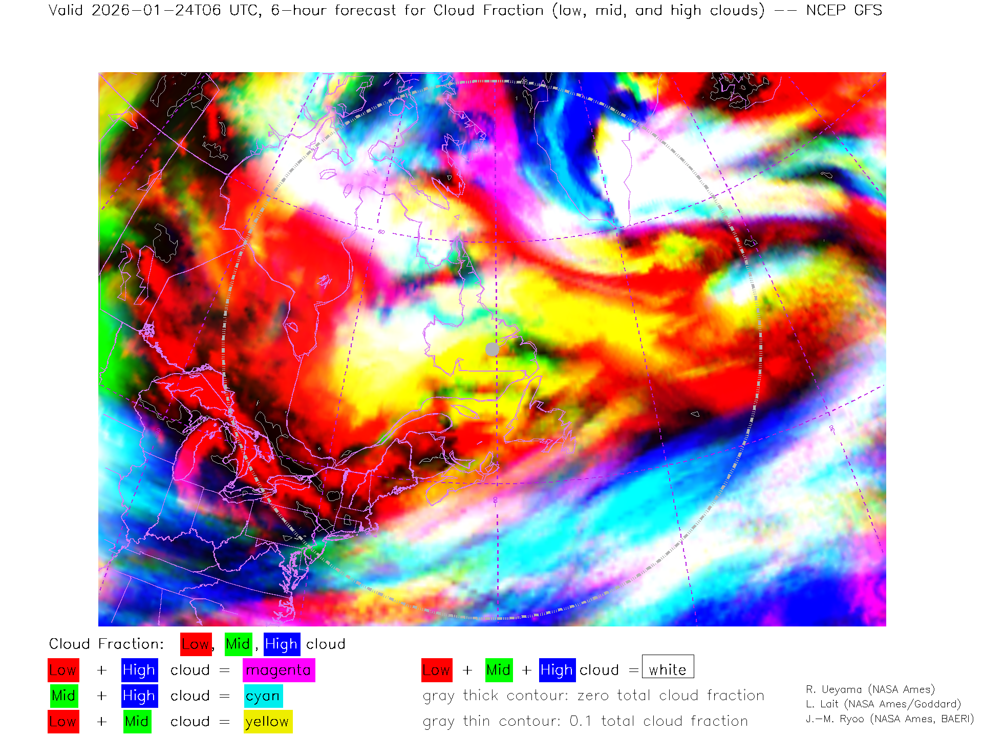 NCEP GFS Forecast Low-, Mid- and High-level Cloud Fraction