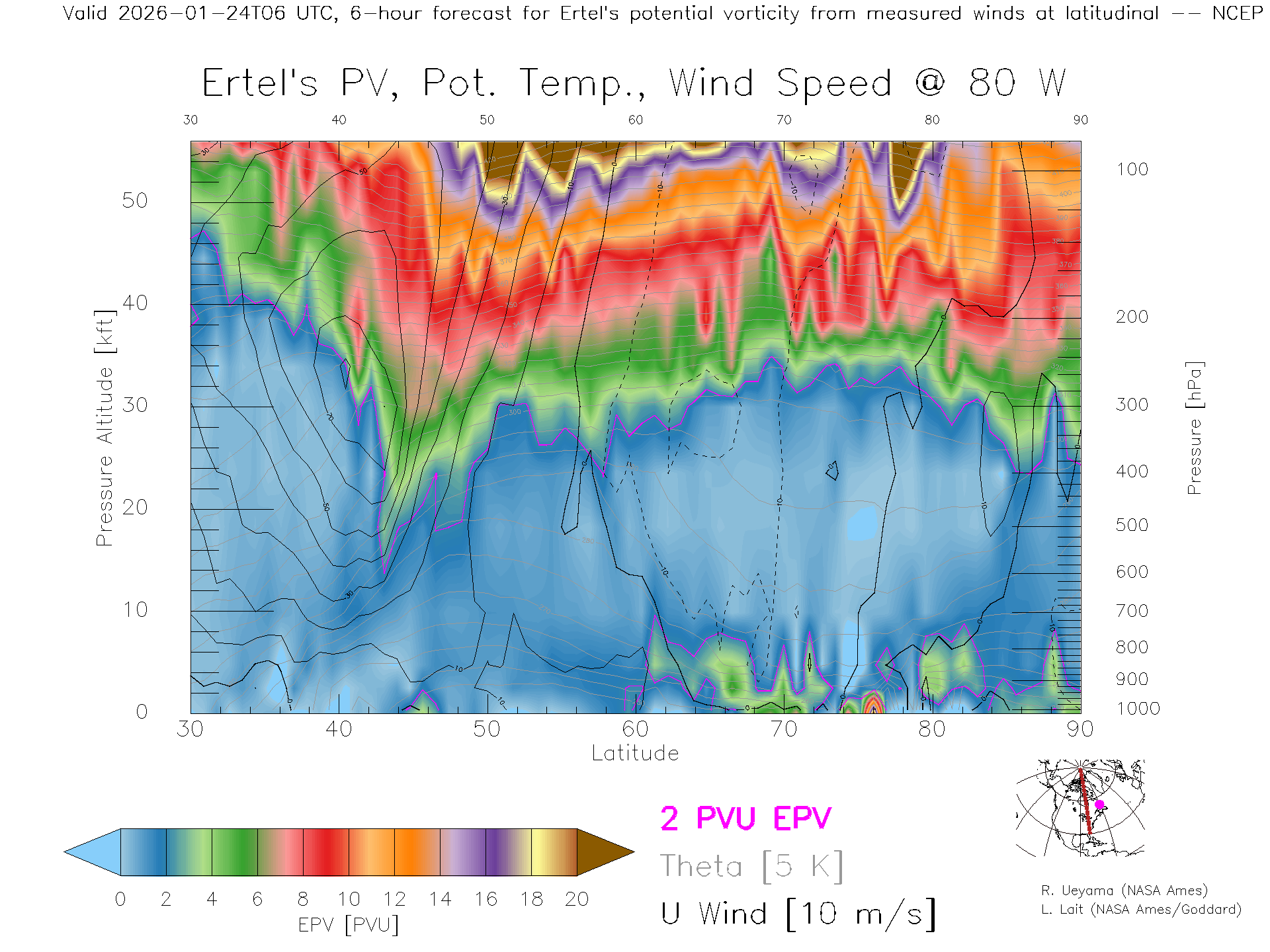 NCEP GFS Forecast PV X-Section (80 W)