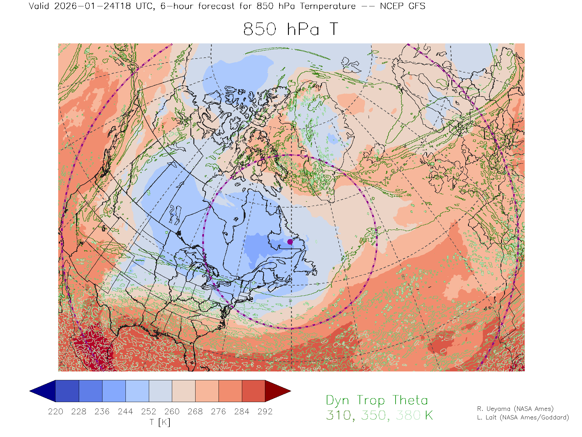 NCEP GFS Forecast 850 hPa Temp.