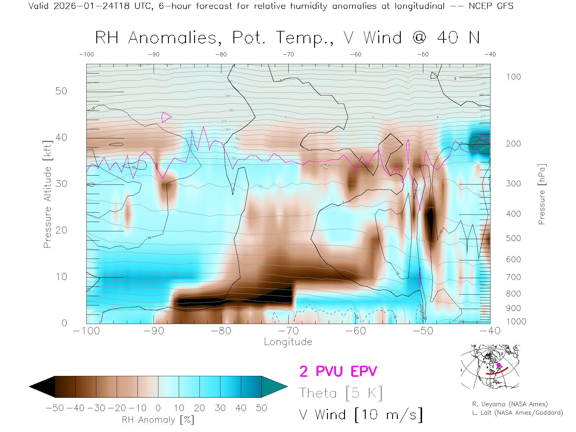 NCEP GFS Forecast Rel. Hum. X-Section (40 N)