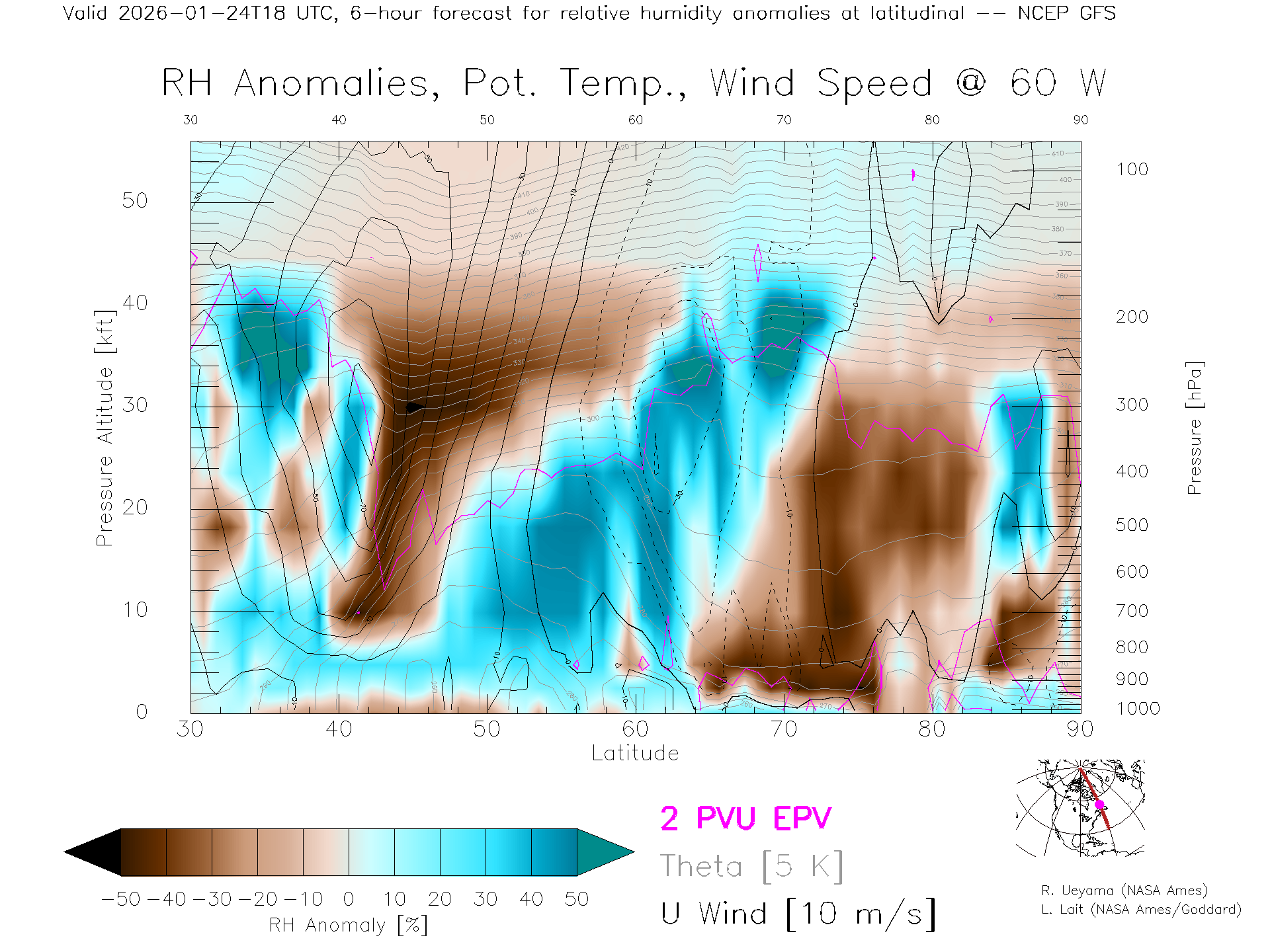 NCEP GFS Forecast Rel. Hum. X-Section (60 W)