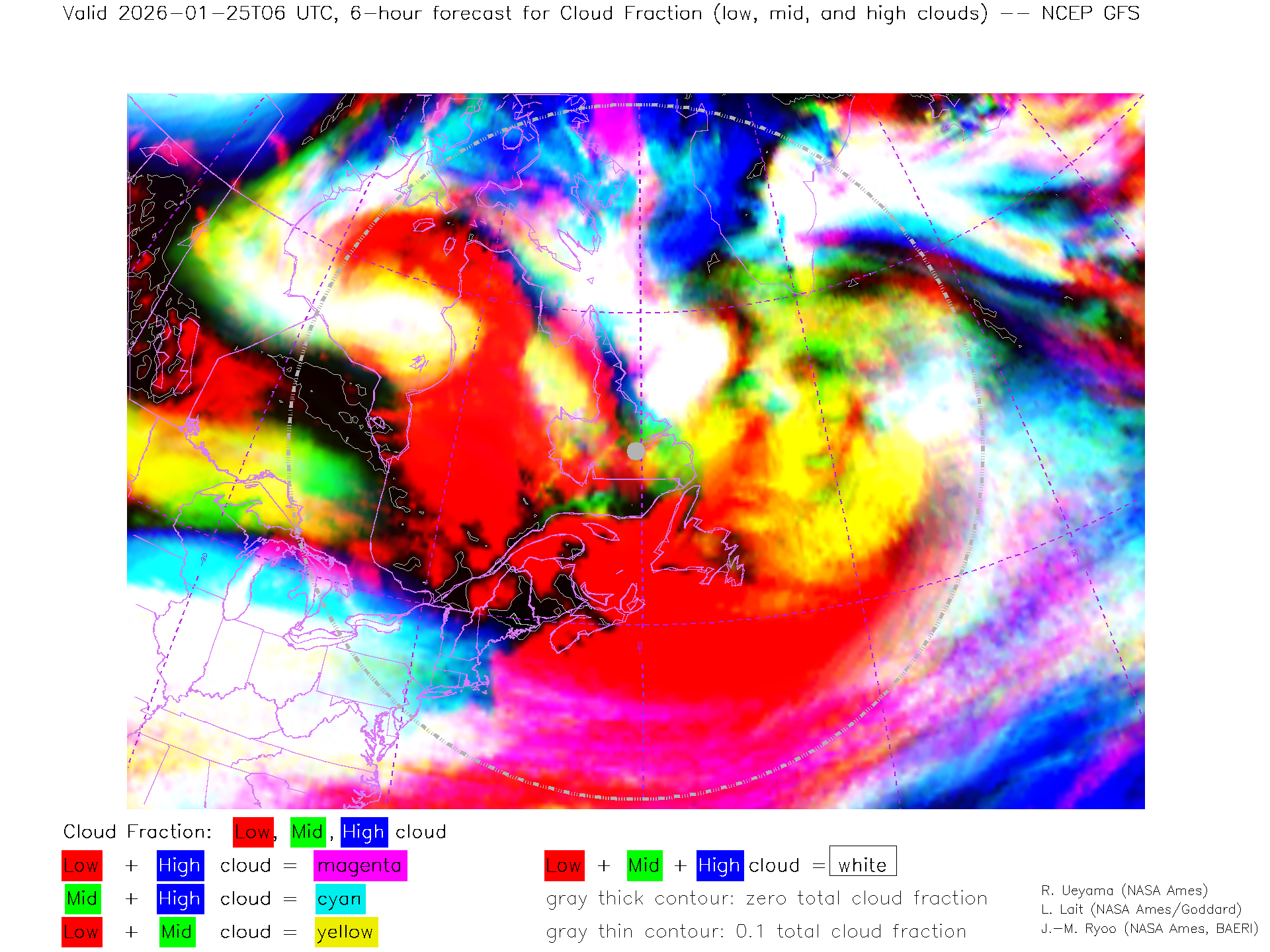 NCEP GFS Forecast Low-, Mid- and High-level Cloud Fraction