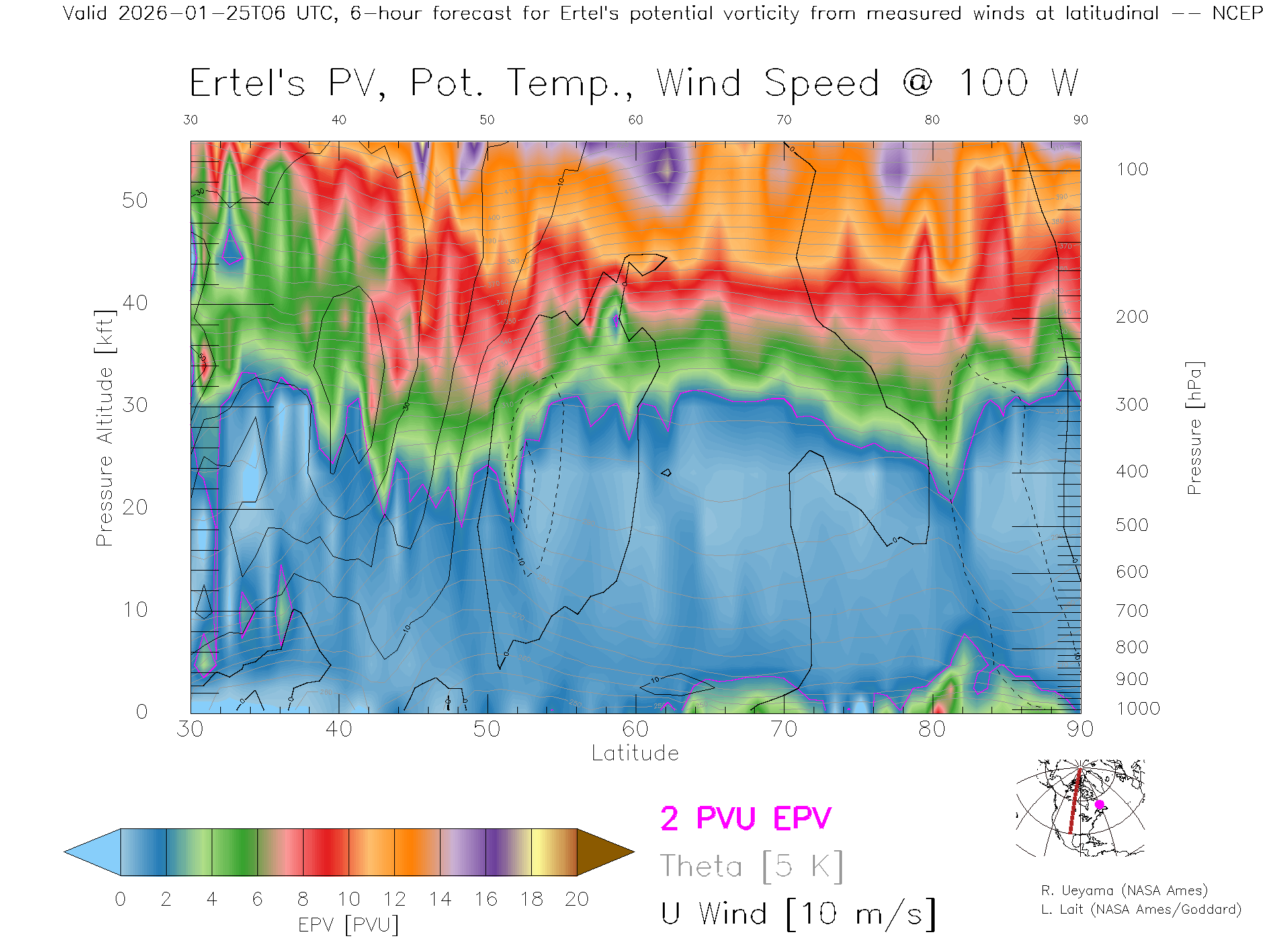 NCEP GFS Forecast PV X-Section (100 W)