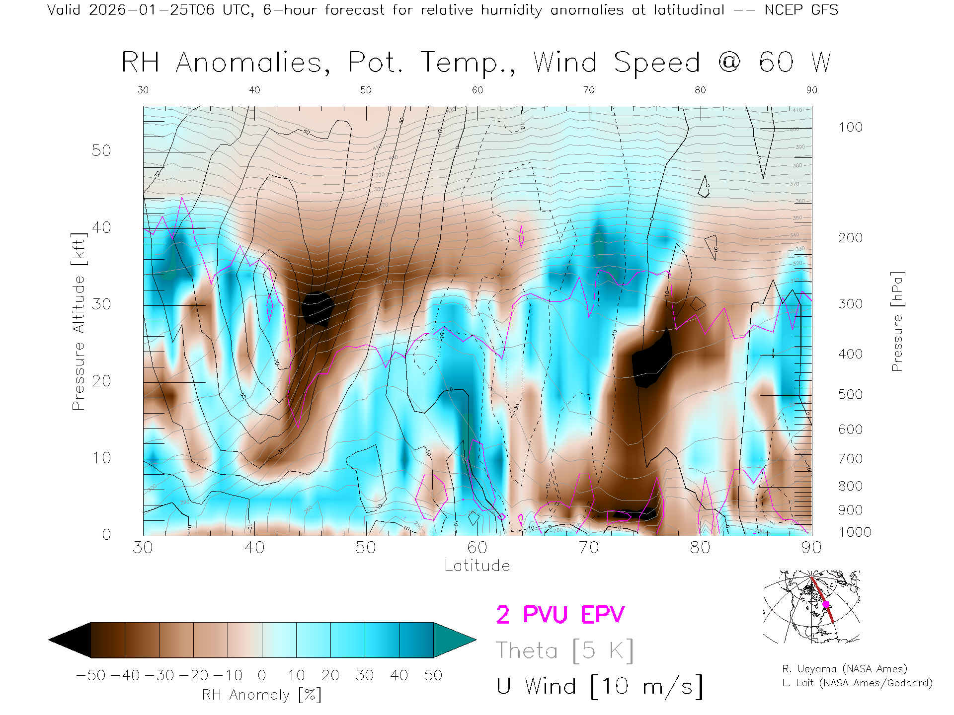 NCEP GFS Forecast Rel. Hum. X-Section (60 W)