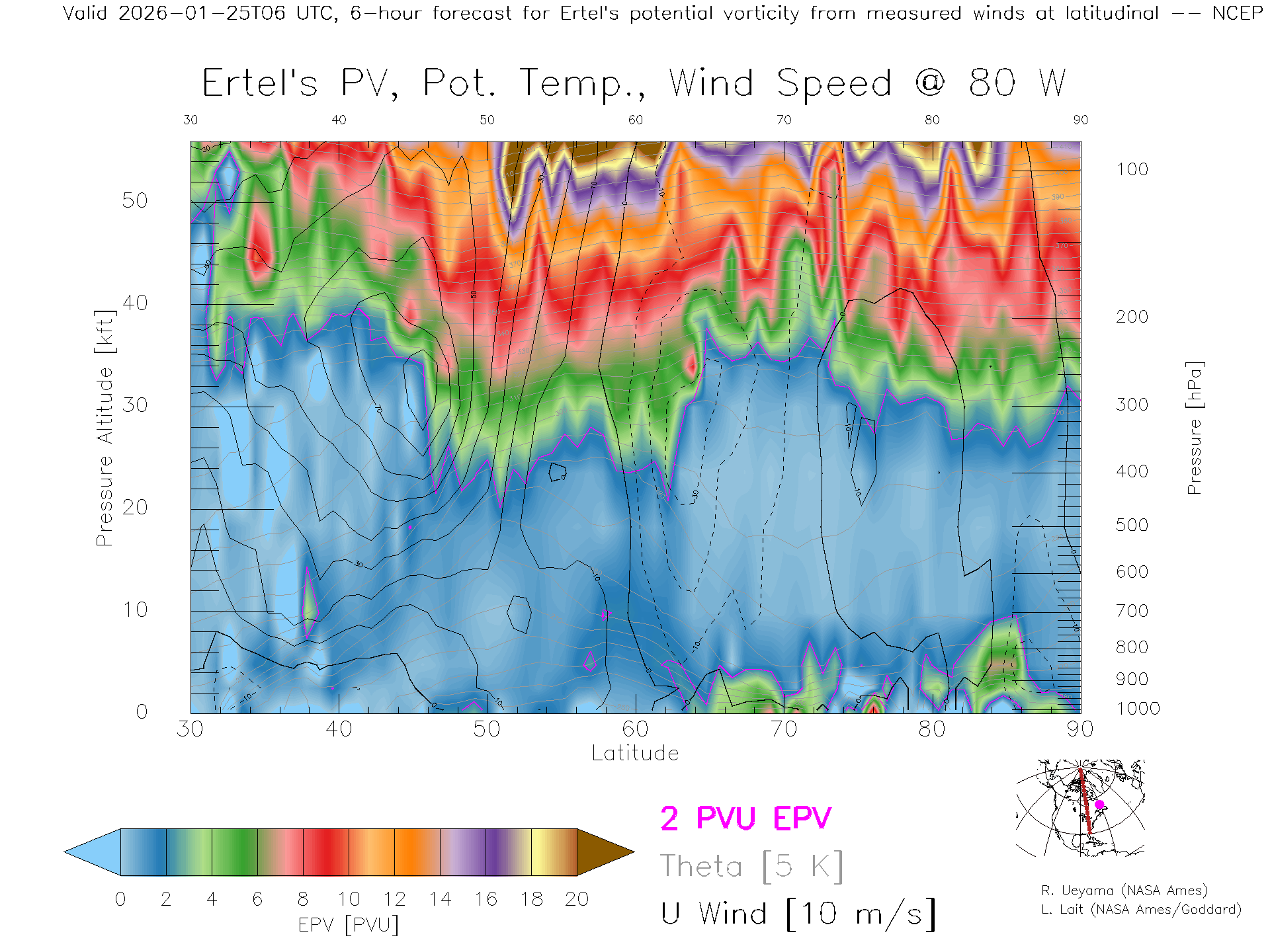 NCEP GFS Forecast PV X-Section (80 W)