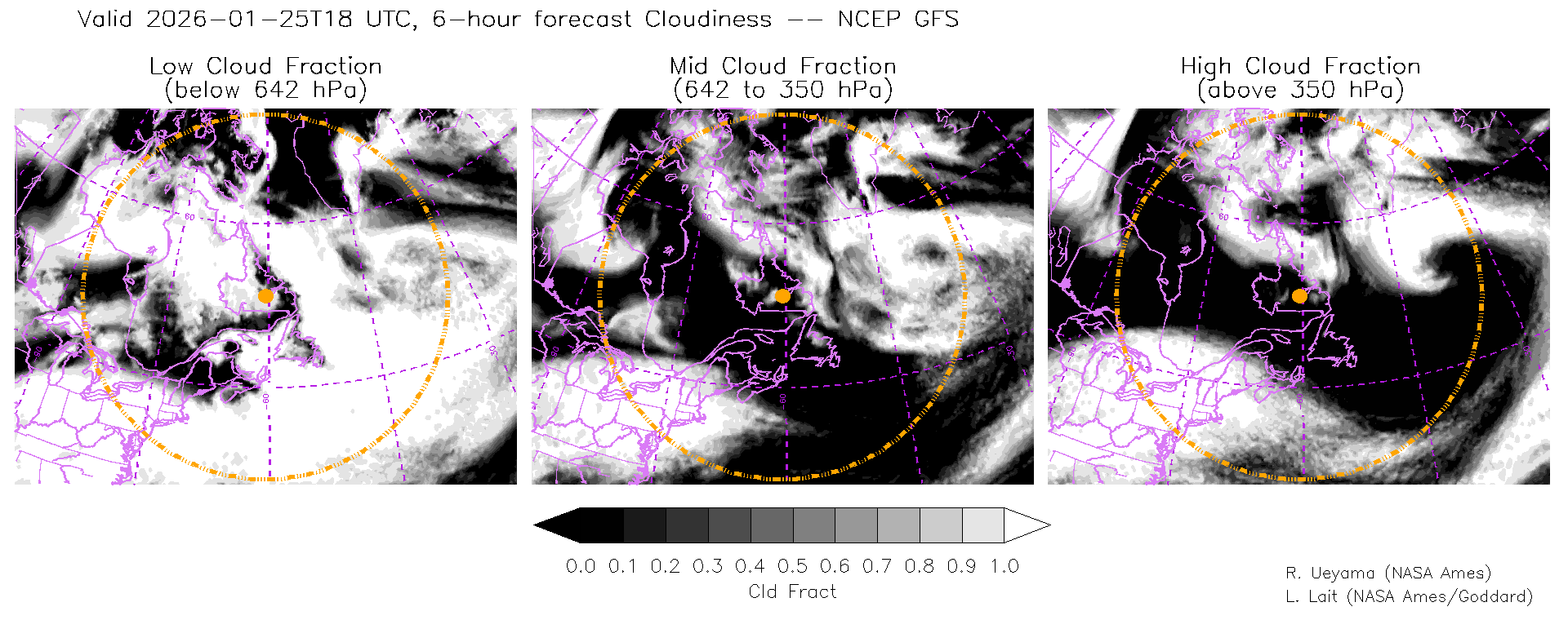 NCEP GFS Forecast Cloud Fraction (High, Mid, Low)