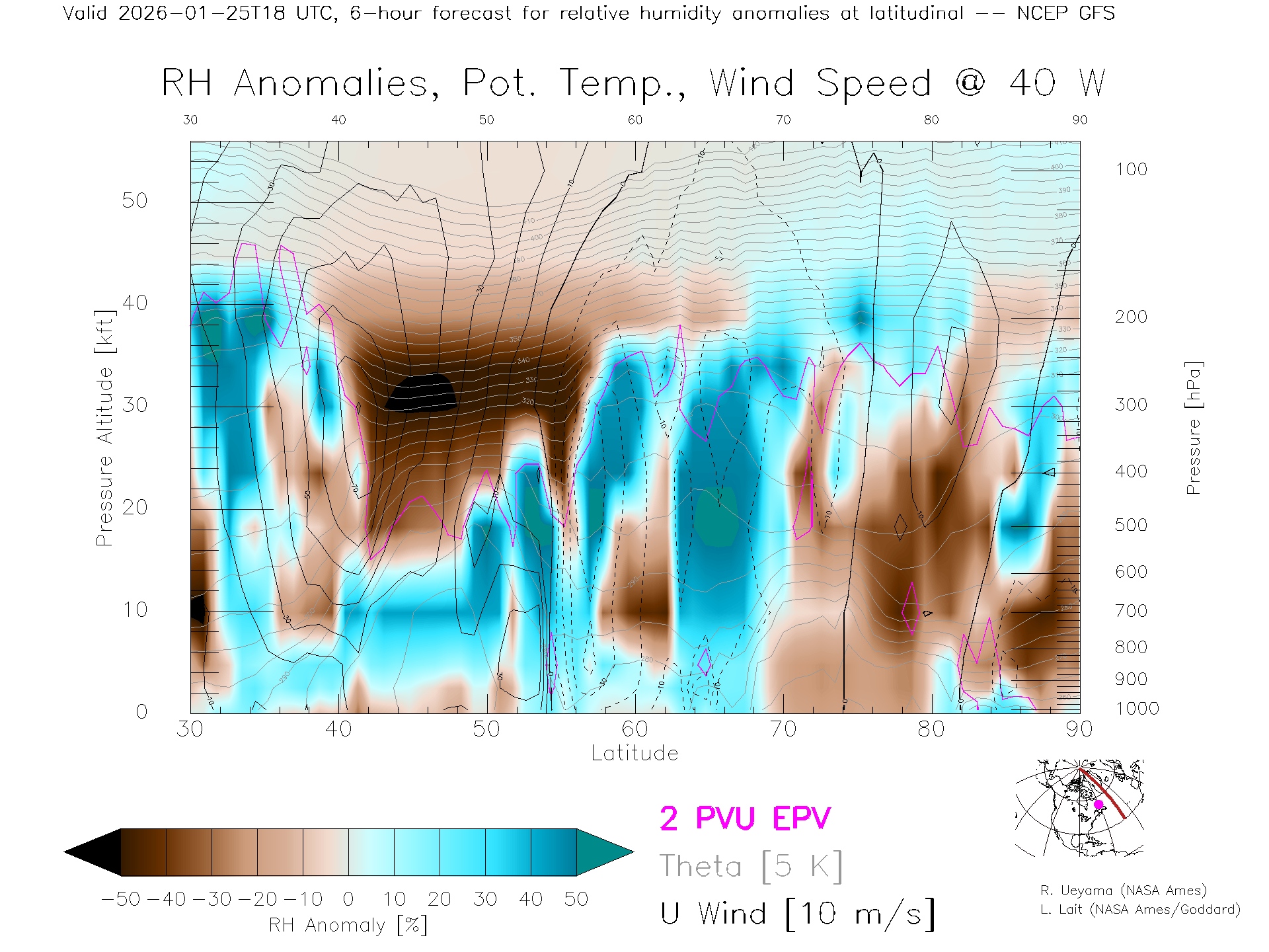 NCEP GFS Forecast Rel. Hum. X-Section (40 W)