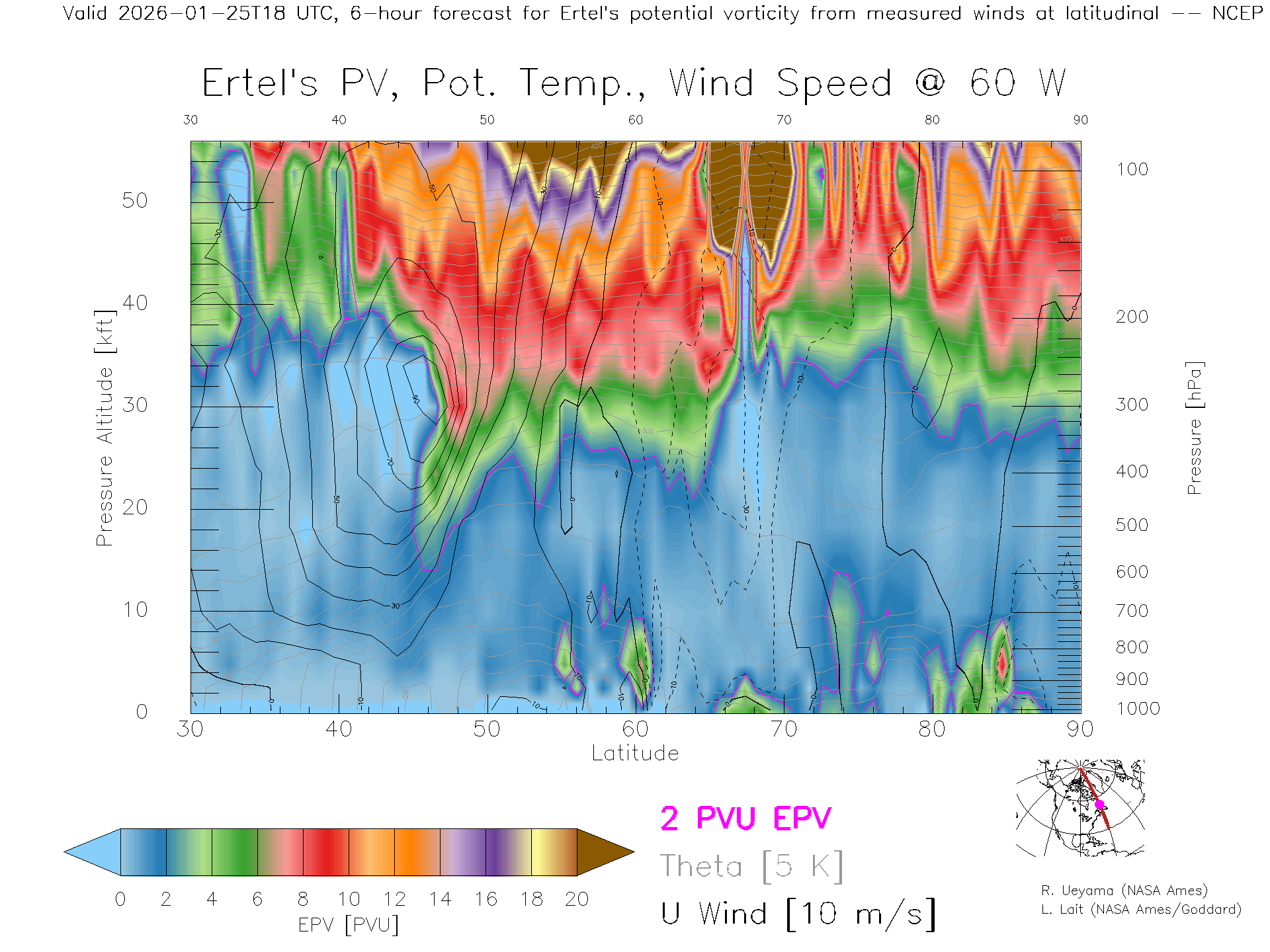 NCEP GFS Forecast PV X-Section (60 W)