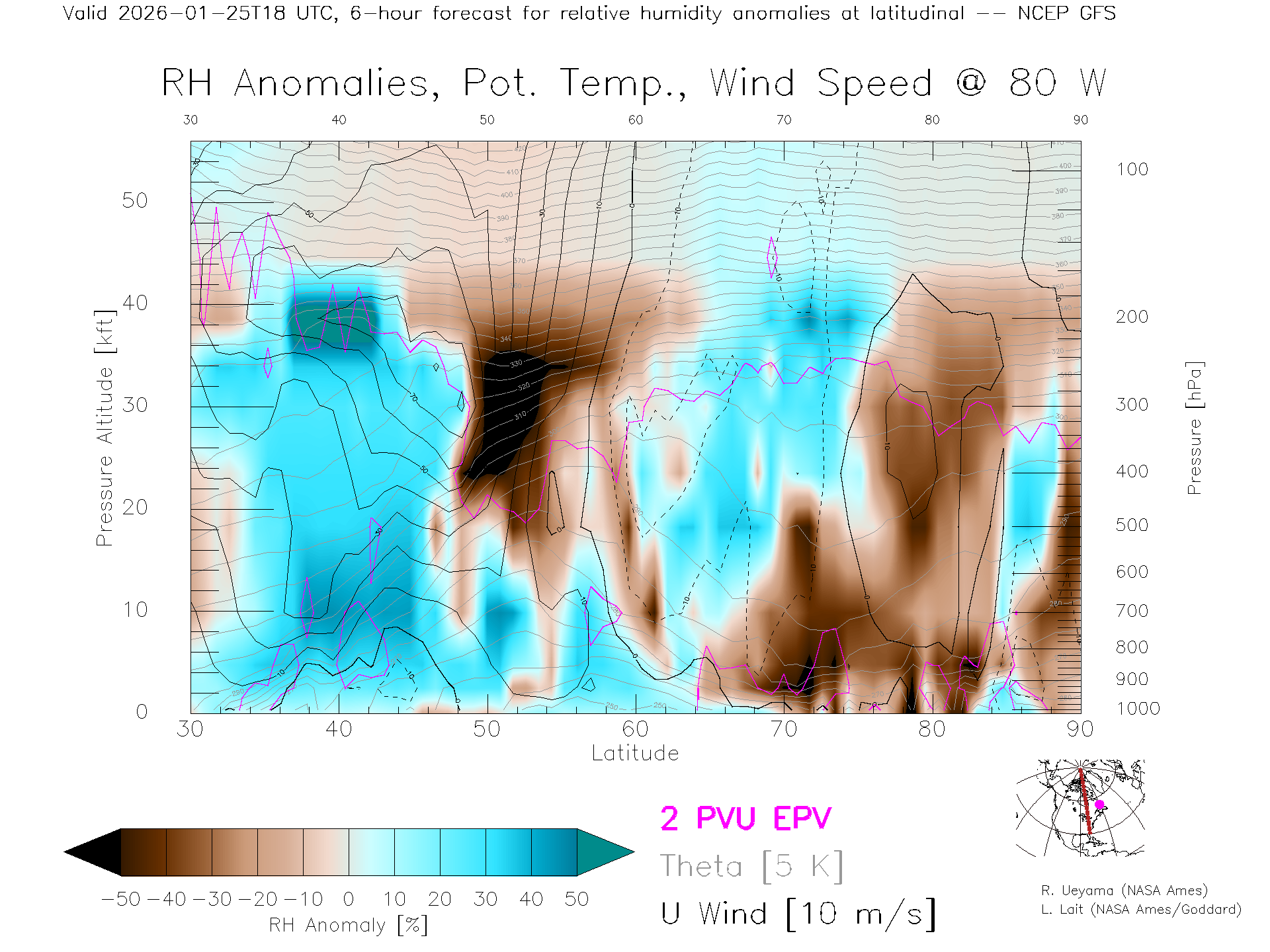 NCEP GFS Forecast Rel. Hum. X-Section (80 W)