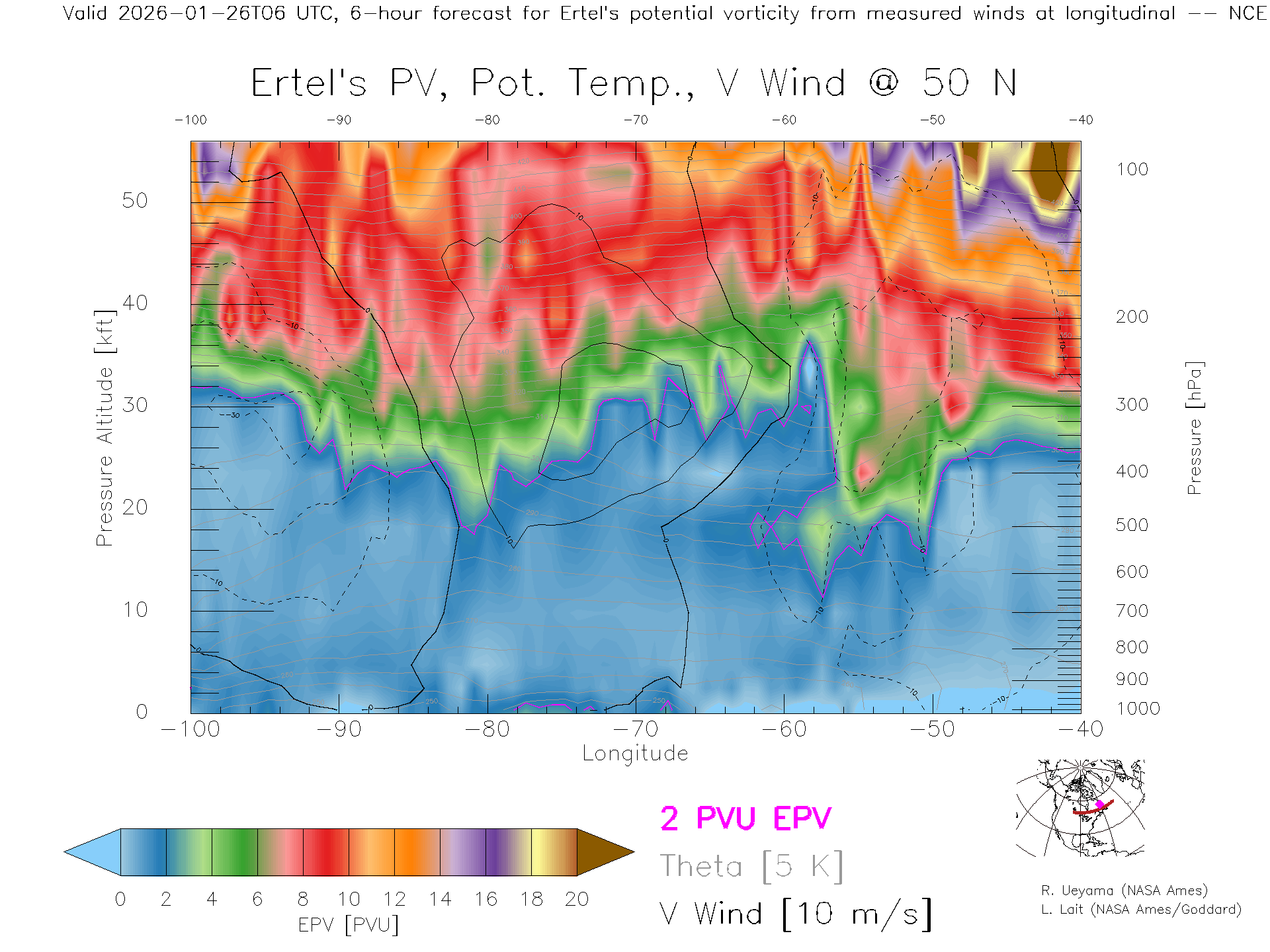 NCEP GFS Forecast PV X-Section (50 N)