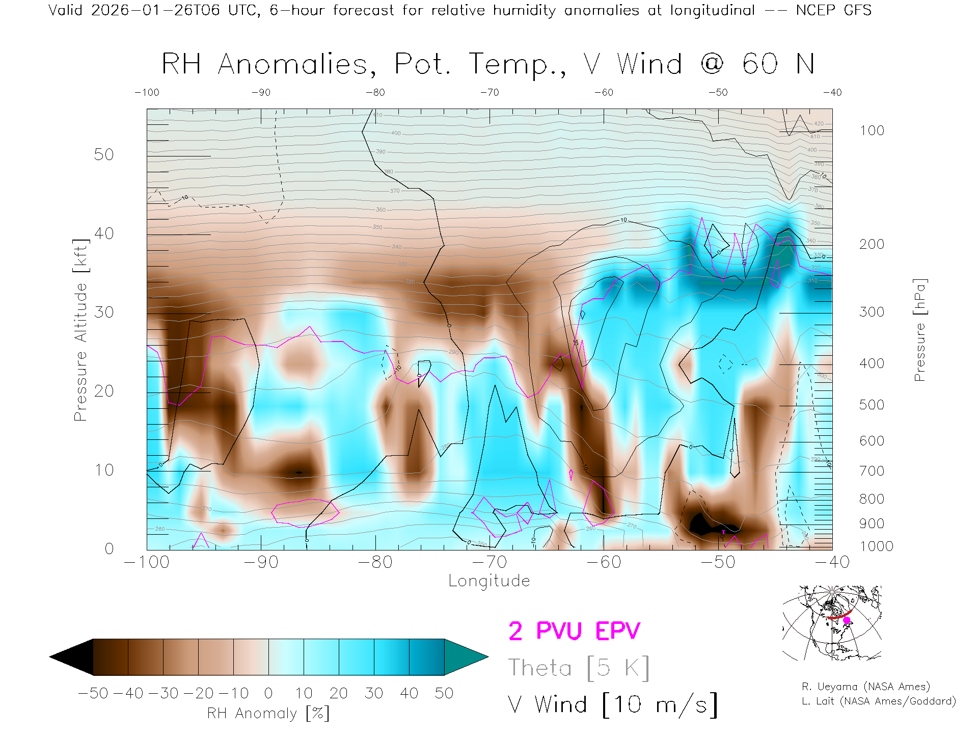NCEP GFS Forecast Rel. Hum. X-Section (60 N)