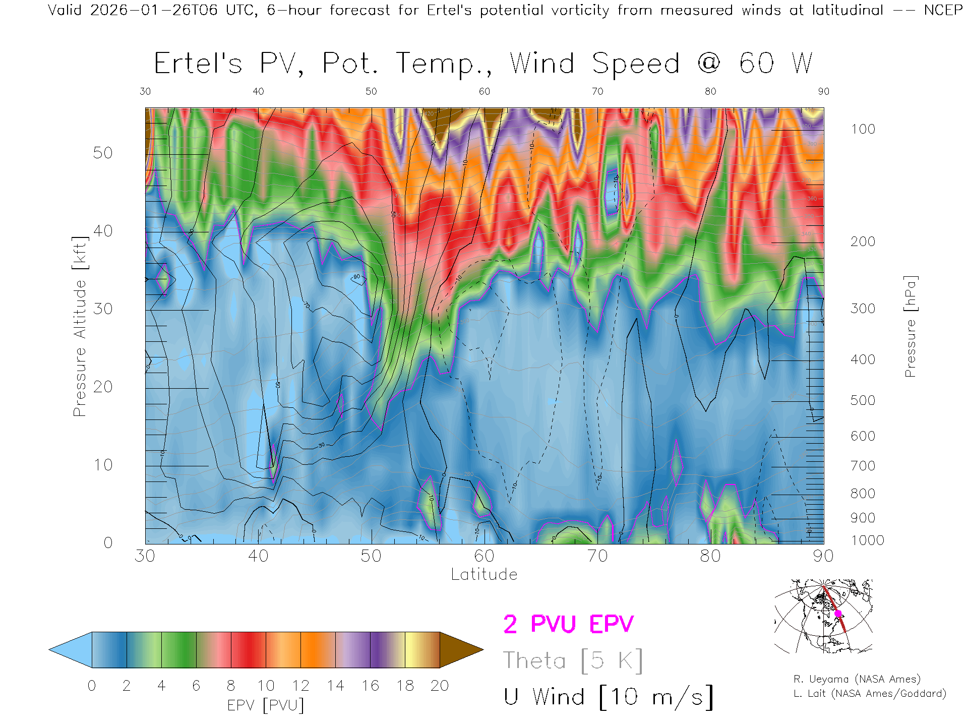 NCEP GFS Forecast PV X-Section (60 W)