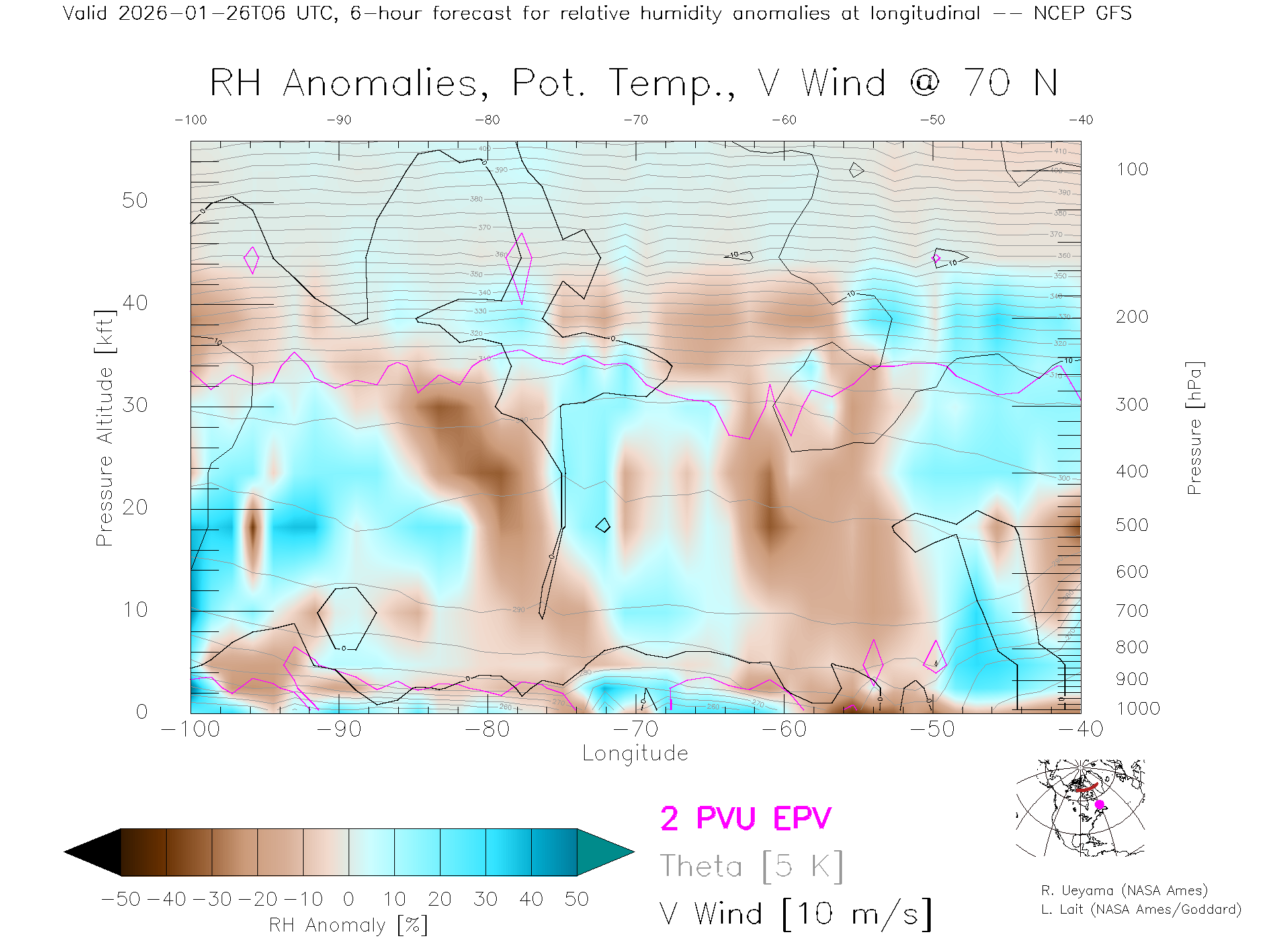 NCEP GFS Forecast Rel. Hum. X-Section (70 N)