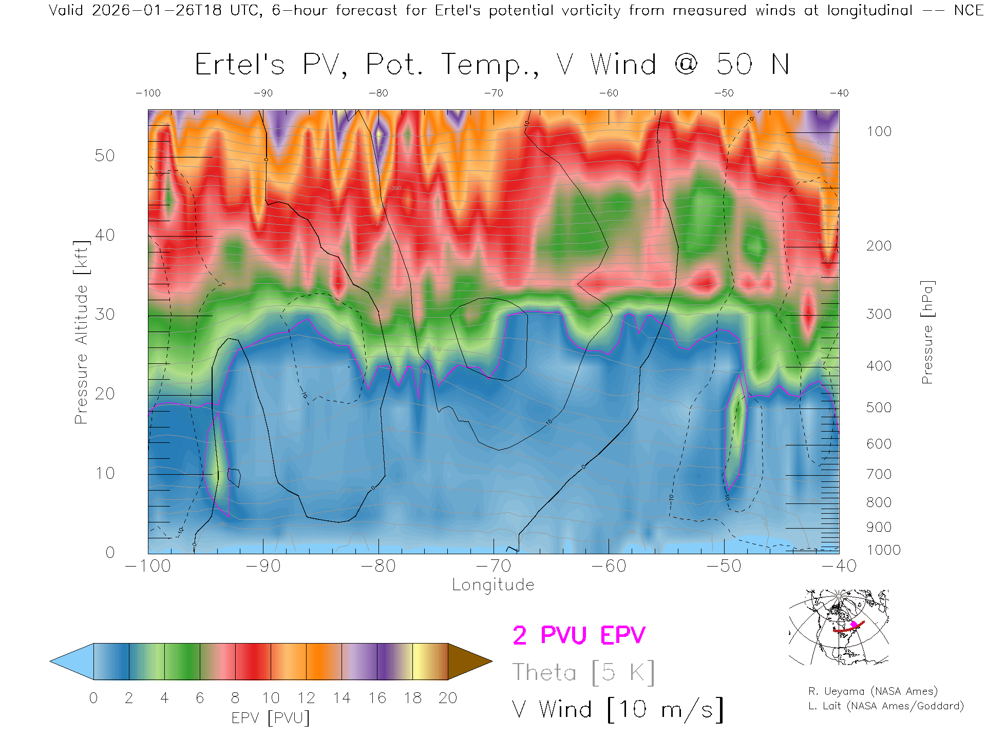 NCEP GFS Forecast PV X-Section (50 N)