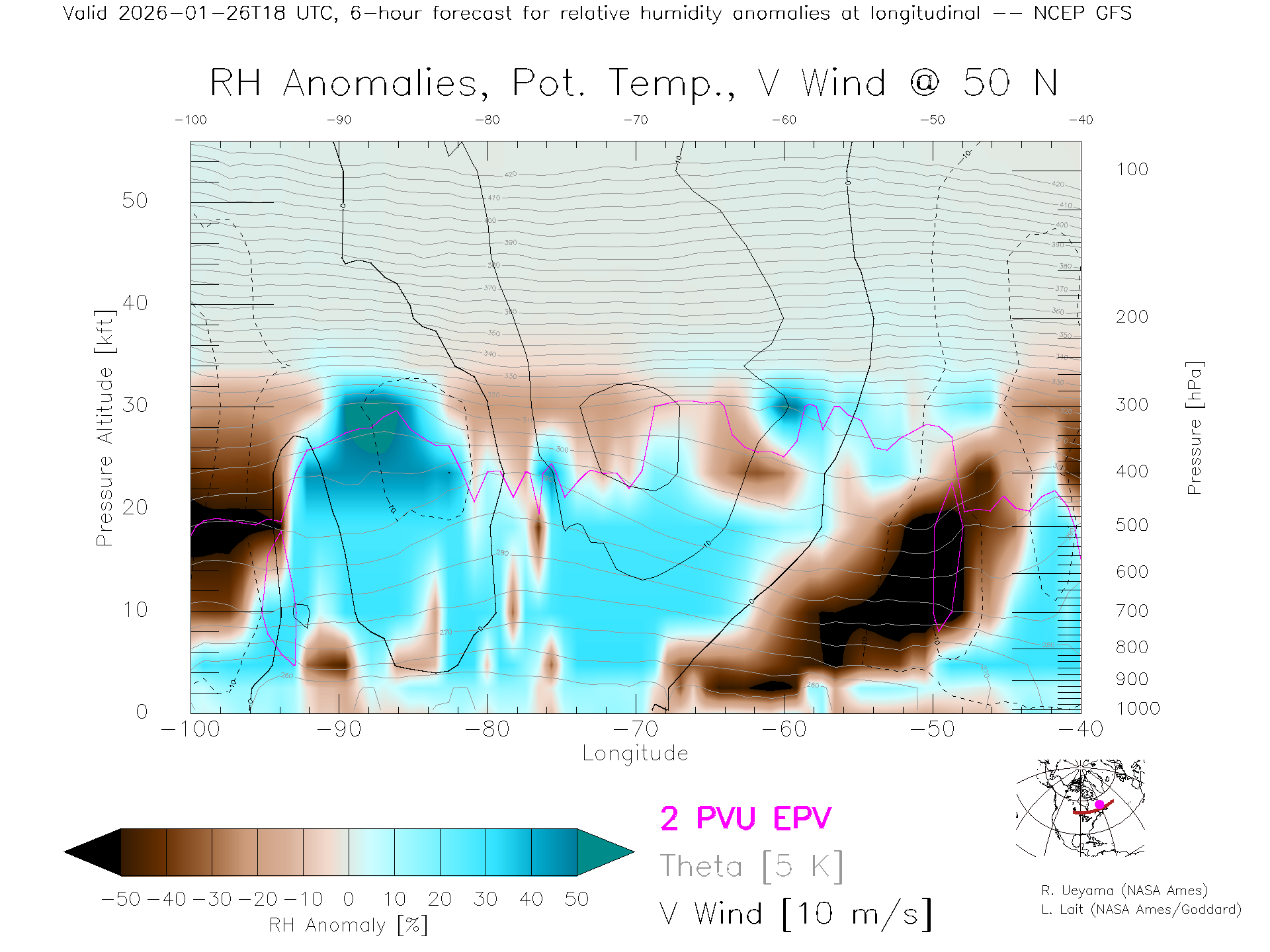 NCEP GFS Forecast Rel. Hum. X-Section (50 N)