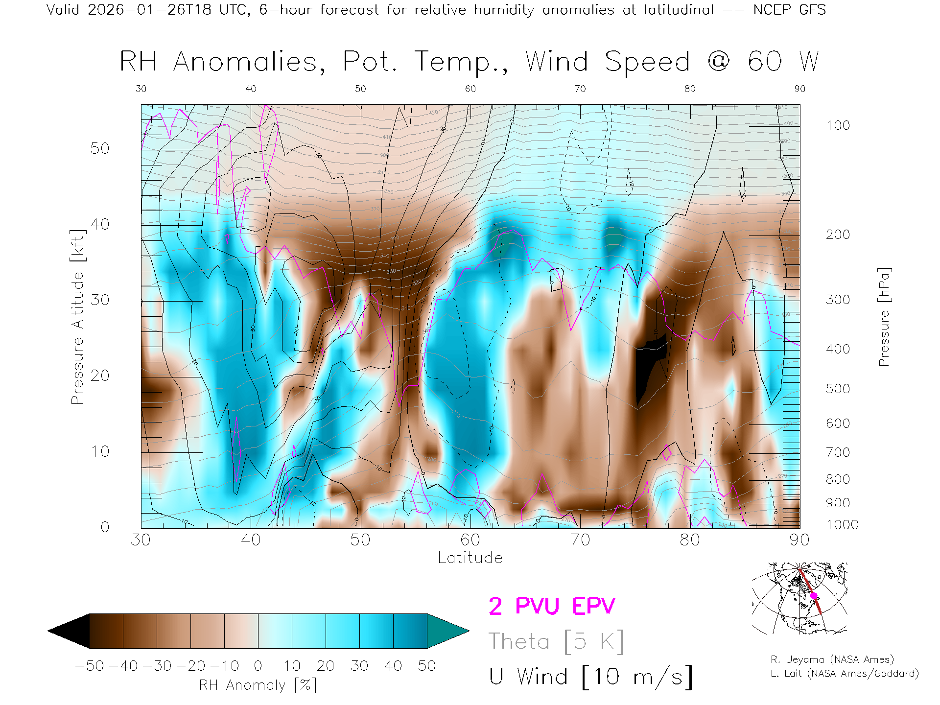 NCEP GFS Forecast Rel. Hum. X-Section (60 W)