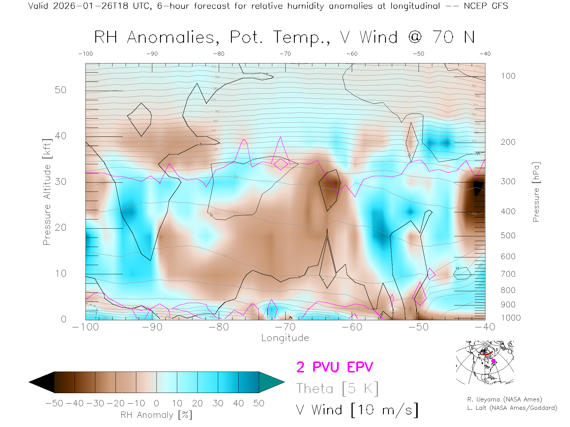 NCEP GFS Forecast Rel. Hum. X-Section (70 N)