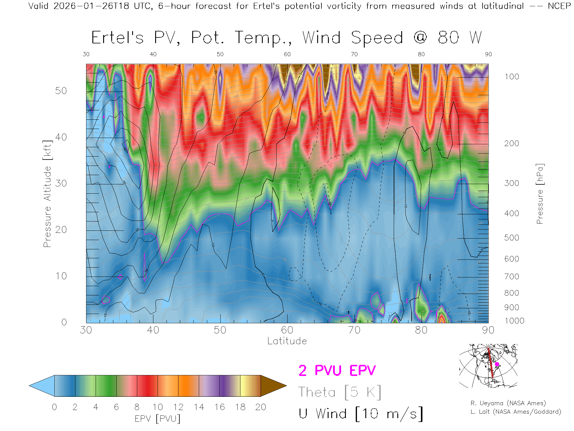 NCEP GFS Forecast PV X-Section (80 W)