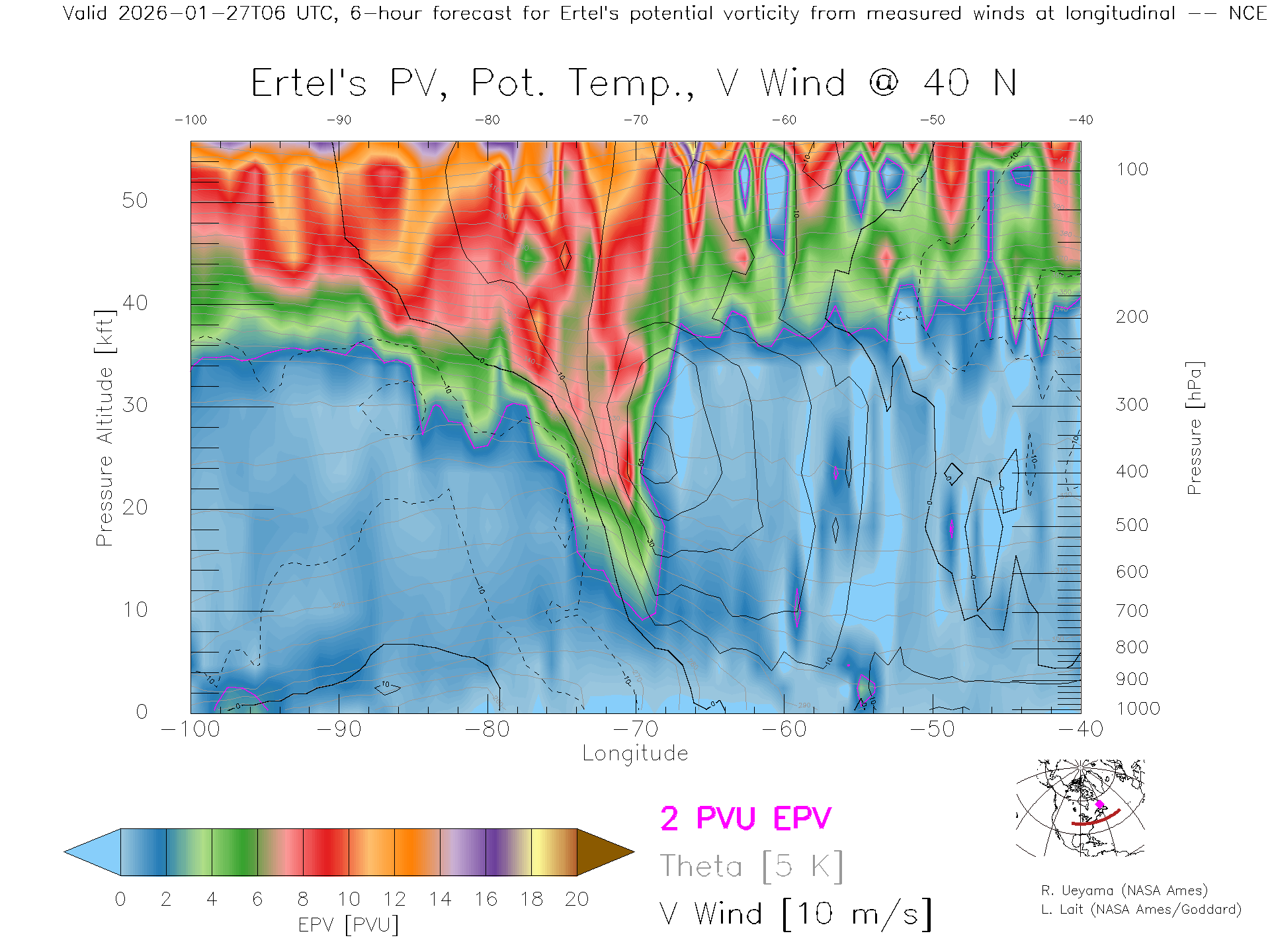 NCEP GFS Forecast PV X-Section (40 N)