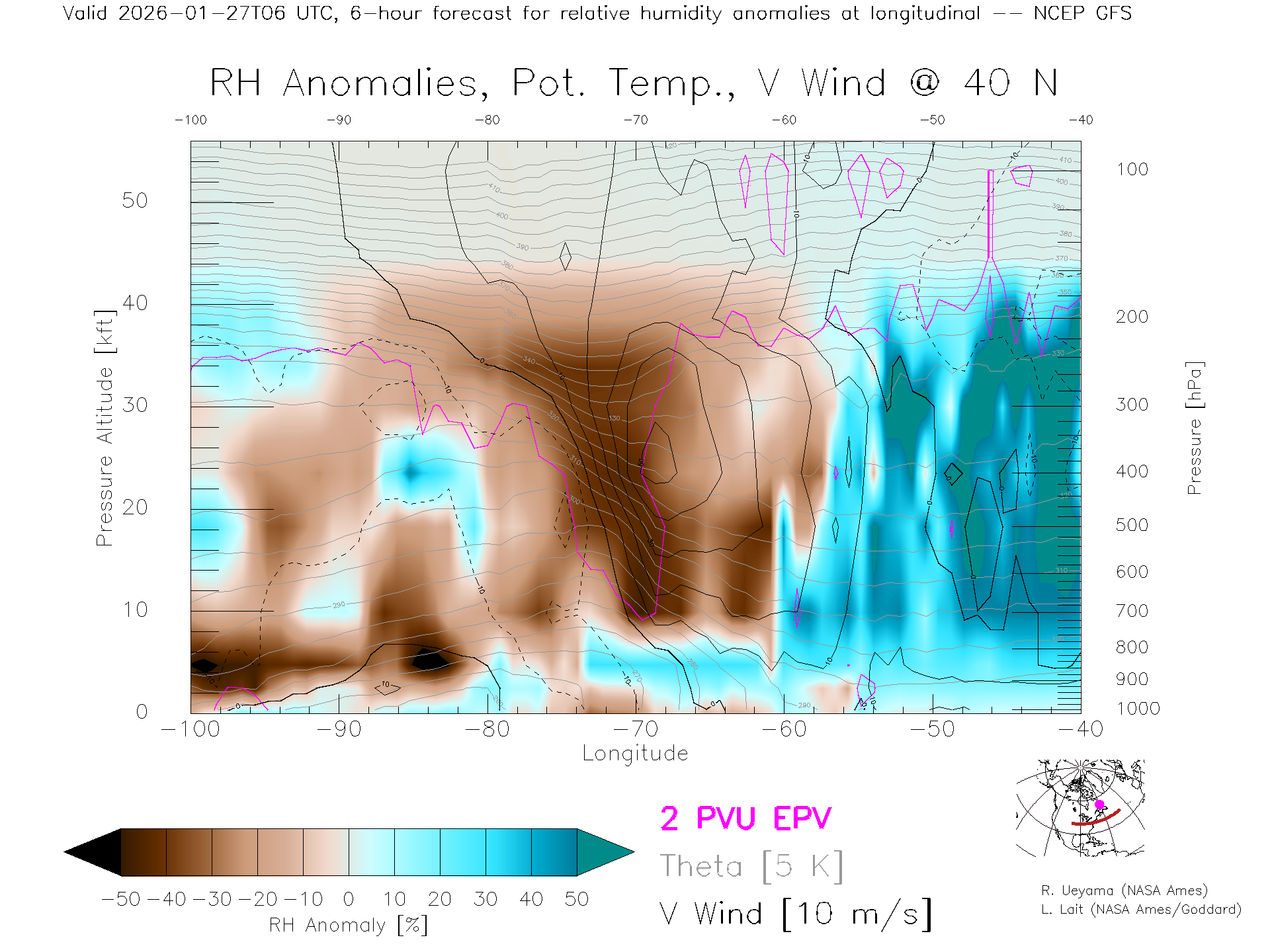NCEP GFS Forecast Rel. Hum. X-Section (40 N)