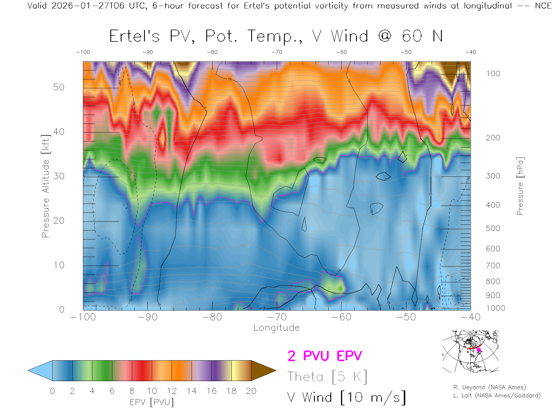 NCEP GFS Forecast PV X-Section (60 N)