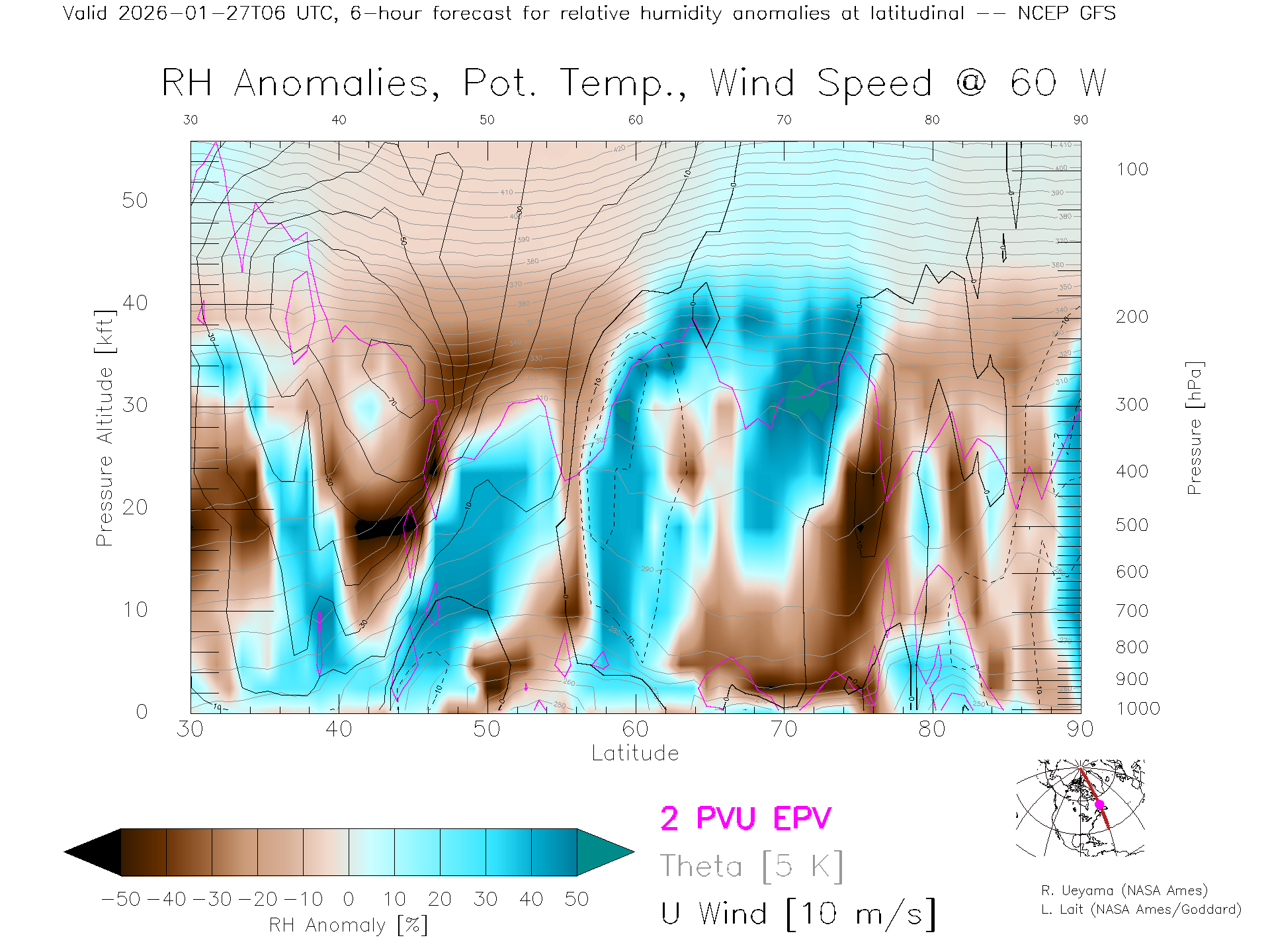 NCEP GFS Forecast Rel. Hum. X-Section (60 W)