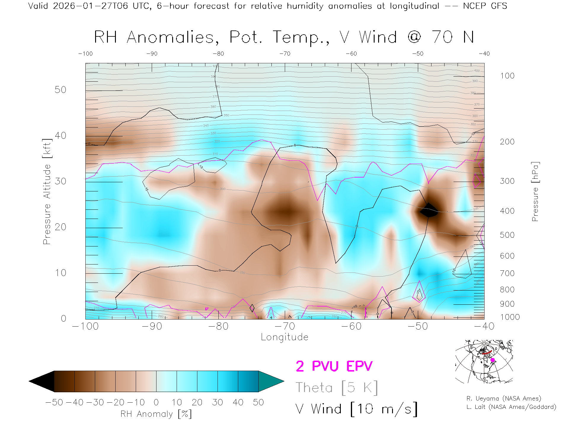NCEP GFS Forecast Rel. Hum. X-Section (70 N)