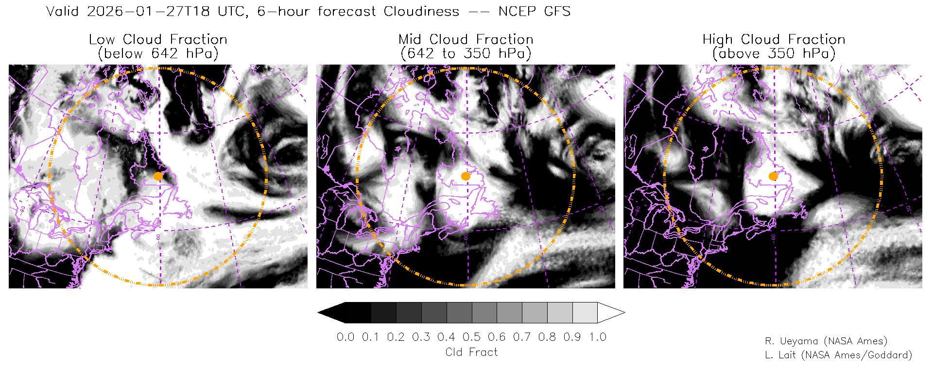 NCEP GFS Forecast Cloud Fraction (High, Mid, Low)