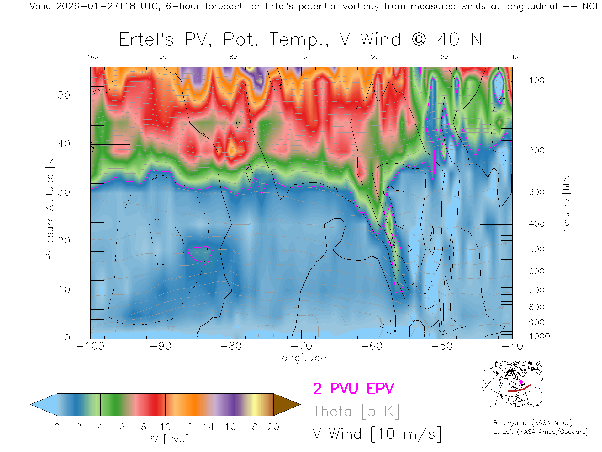 NCEP GFS Forecast PV X-Section (40 N)