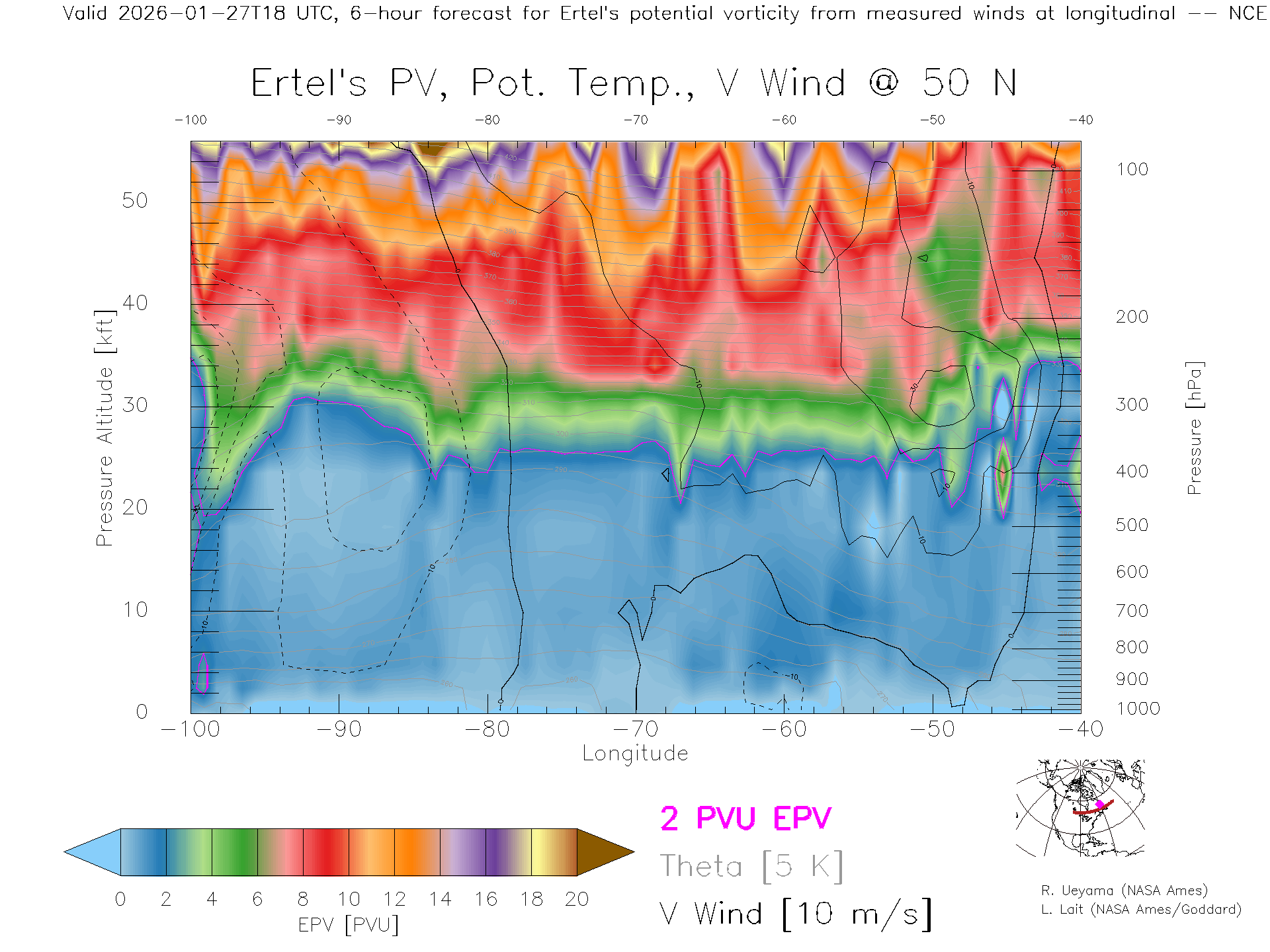 NCEP GFS Forecast PV X-Section (50 N)