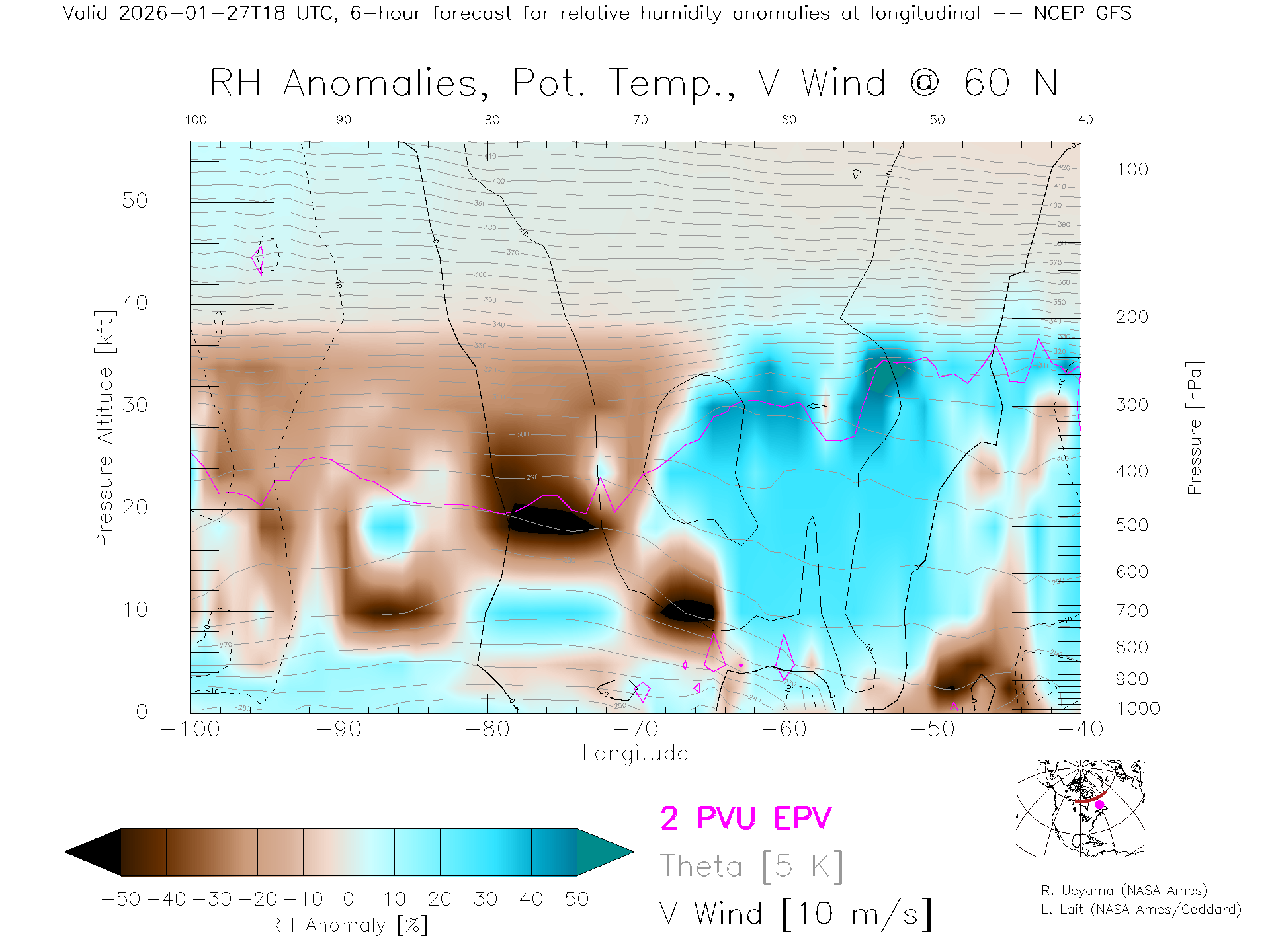 NCEP GFS Forecast Rel. Hum. X-Section (60 N)