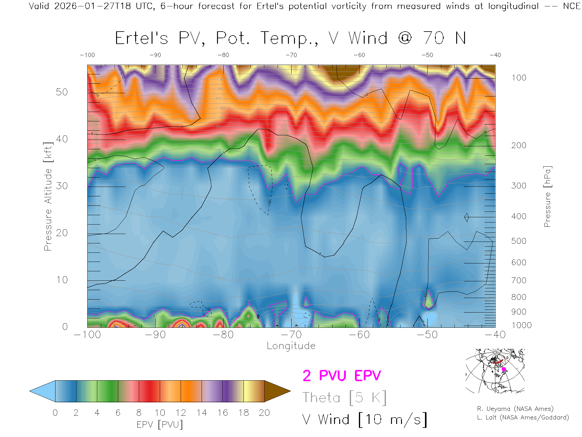NCEP GFS Forecast PV X-Section (70 N)