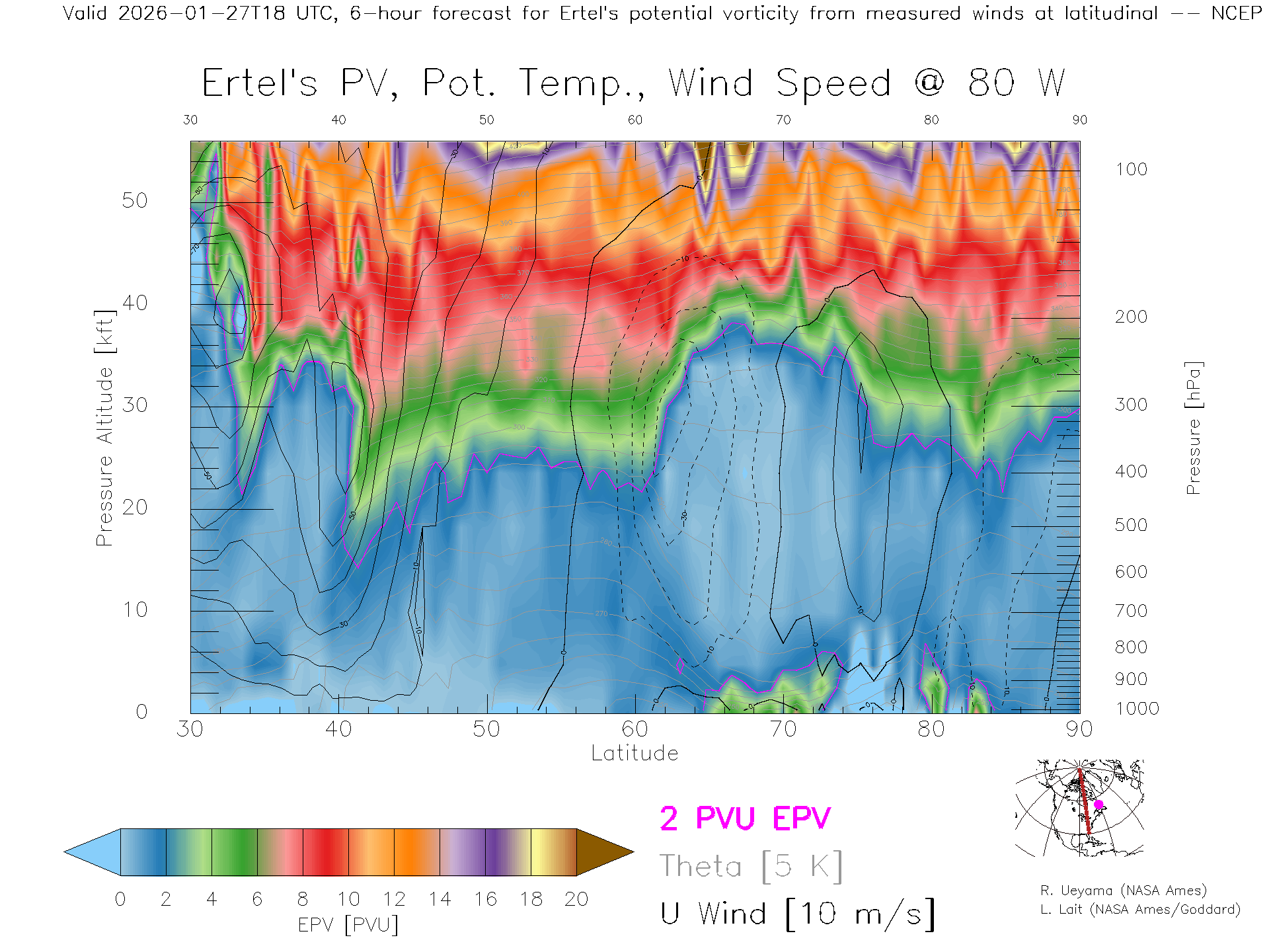 NCEP GFS Forecast PV X-Section (80 W)