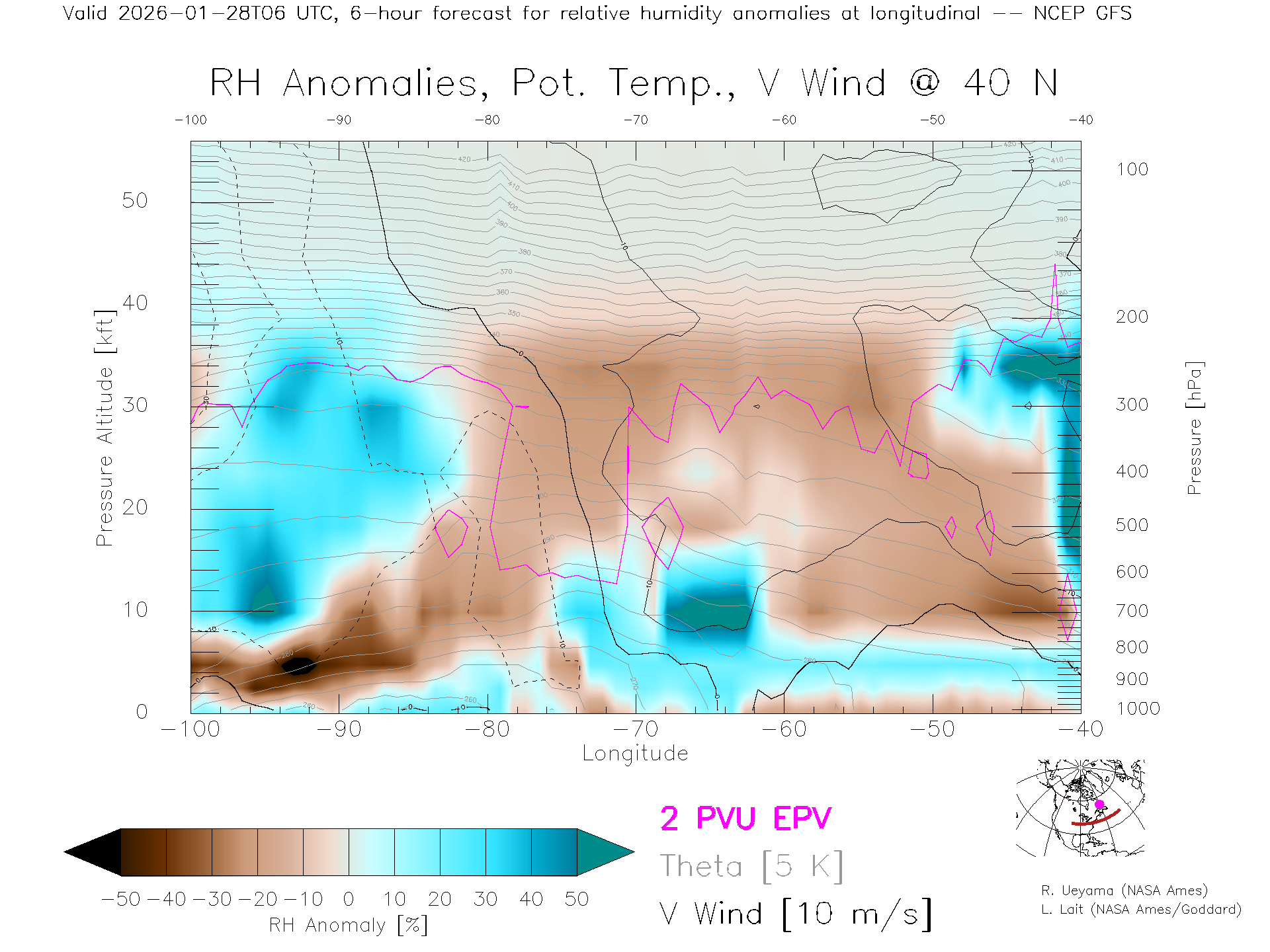 NCEP GFS Forecast Rel. Hum. X-Section (40 N)