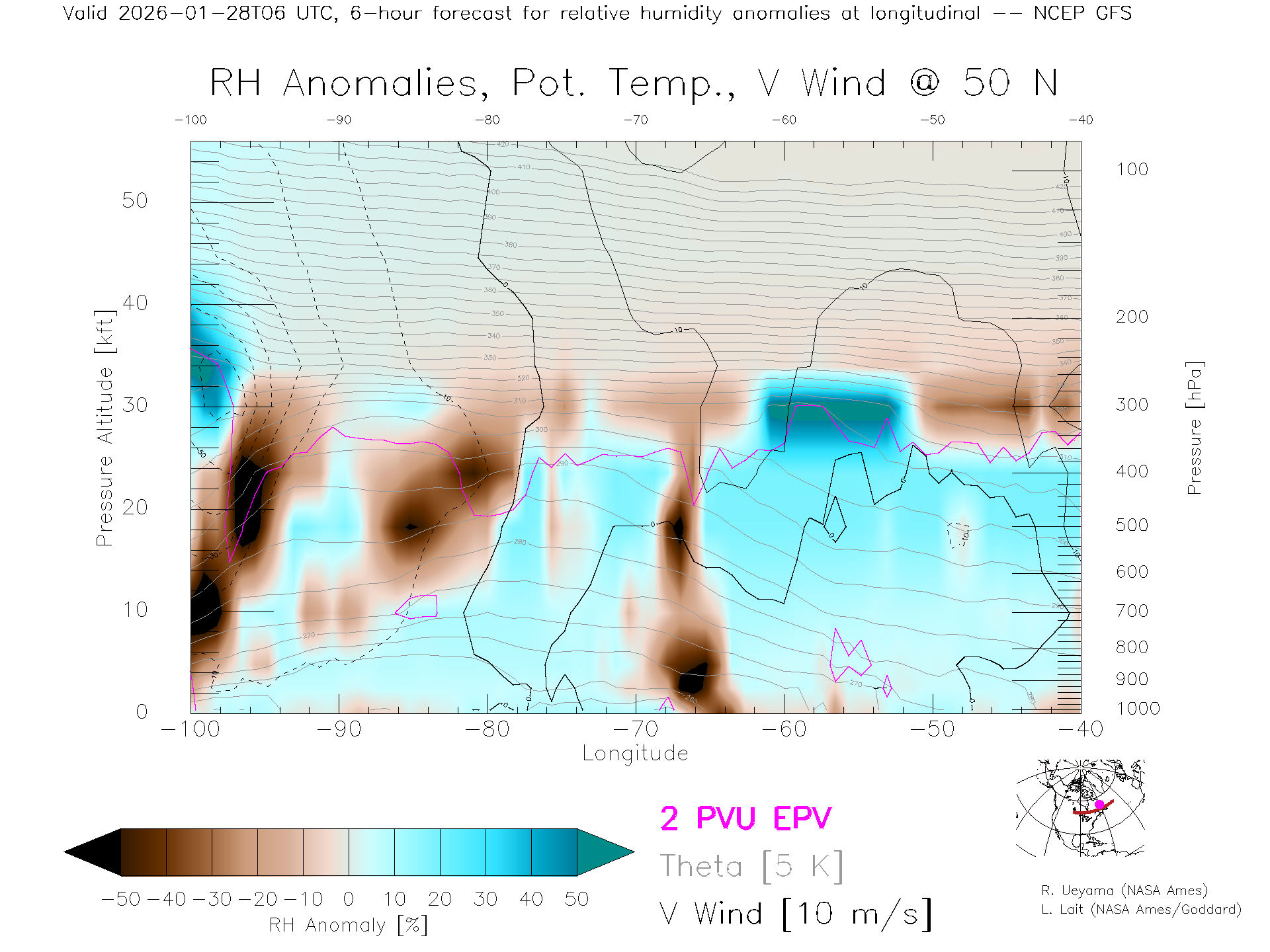 NCEP GFS Forecast Rel. Hum. X-Section (50 N)