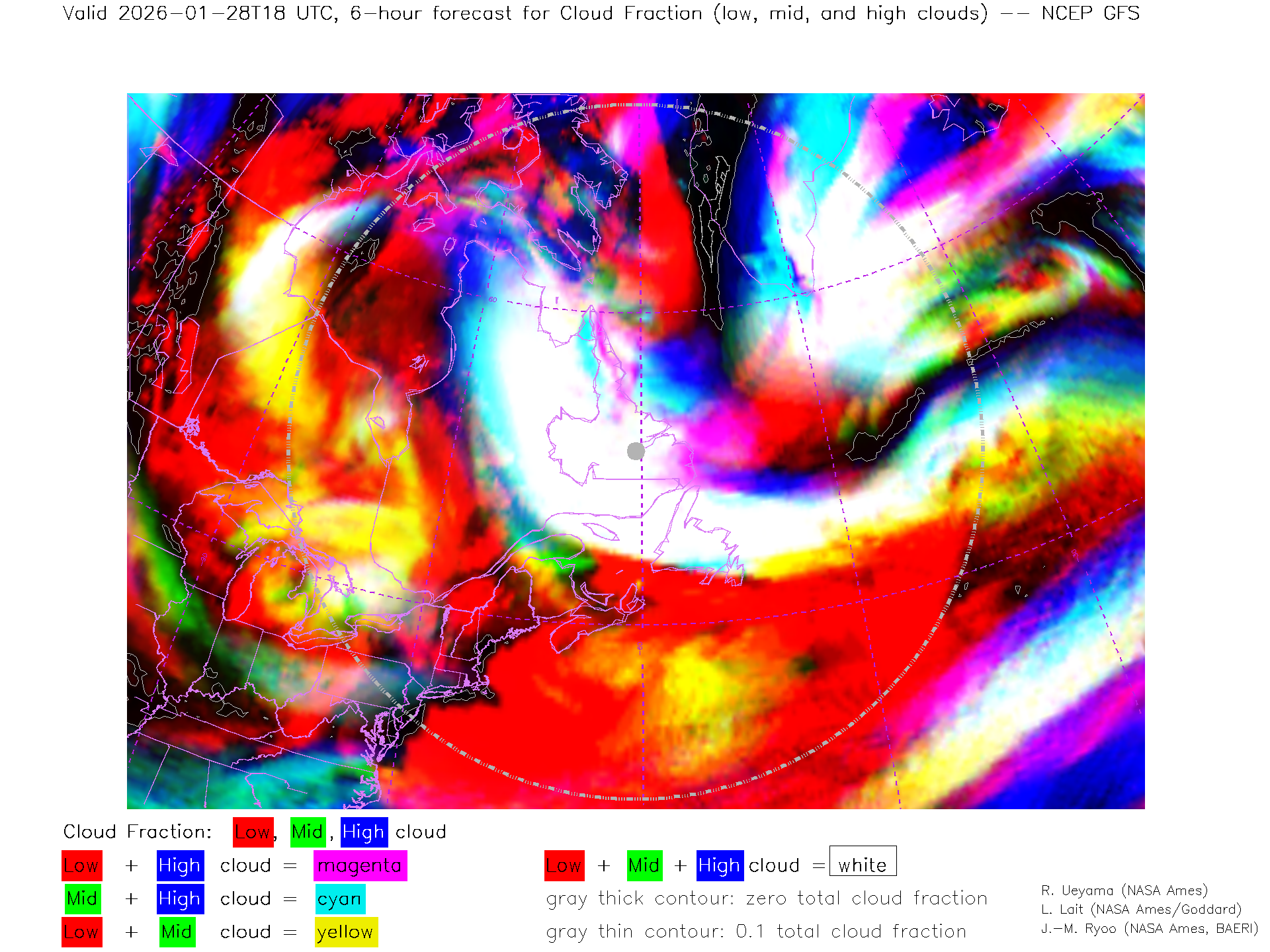 NCEP GFS Forecast Low-, Mid- and High-level Cloud Fraction