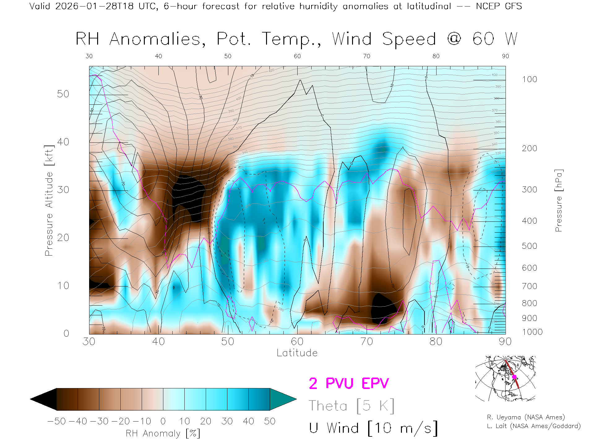 NCEP GFS Forecast Rel. Hum. X-Section (60 W)